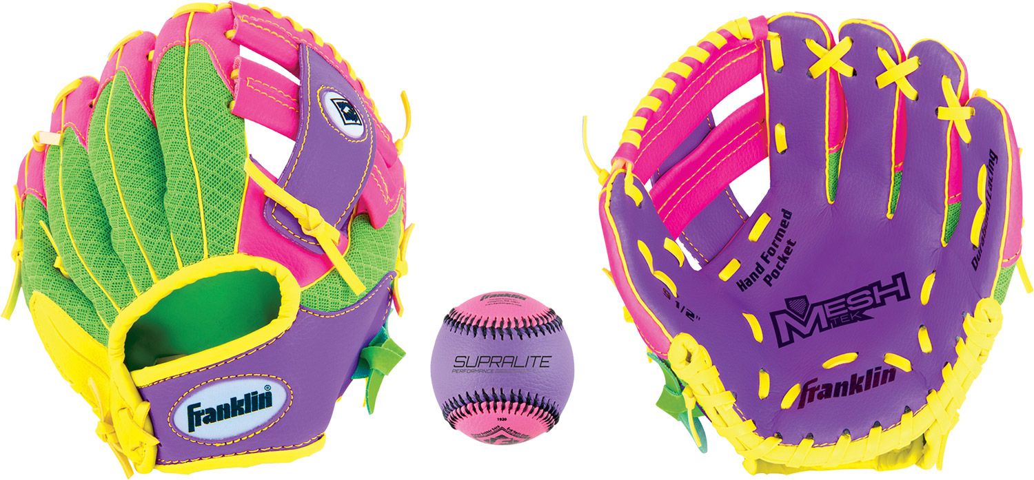 The Franklin®: 9.5” T-Ball Recreational Glove with Ball features a lightweight technical mesh shell construction that makes it soft and easy for first time players to squeeze the glove closed.