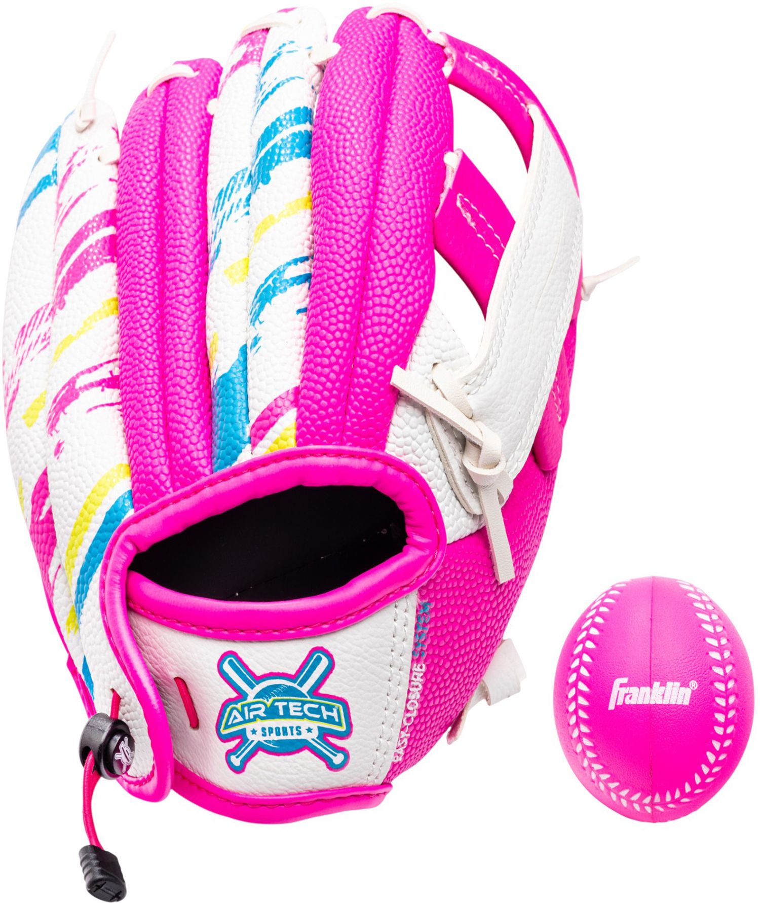 Designed for the beginner player, Franklin's new light weight Air Tech® Adapt Tee Ball Glove is engineered to fit all your child's practice and game needs. This Air Tech® series features an ultra-light weight foam construction that is ready-to-play straight from the shelf and an easy self-stick adjustable wrist closure which makes it extremely easy to teach correct hand-positioning.