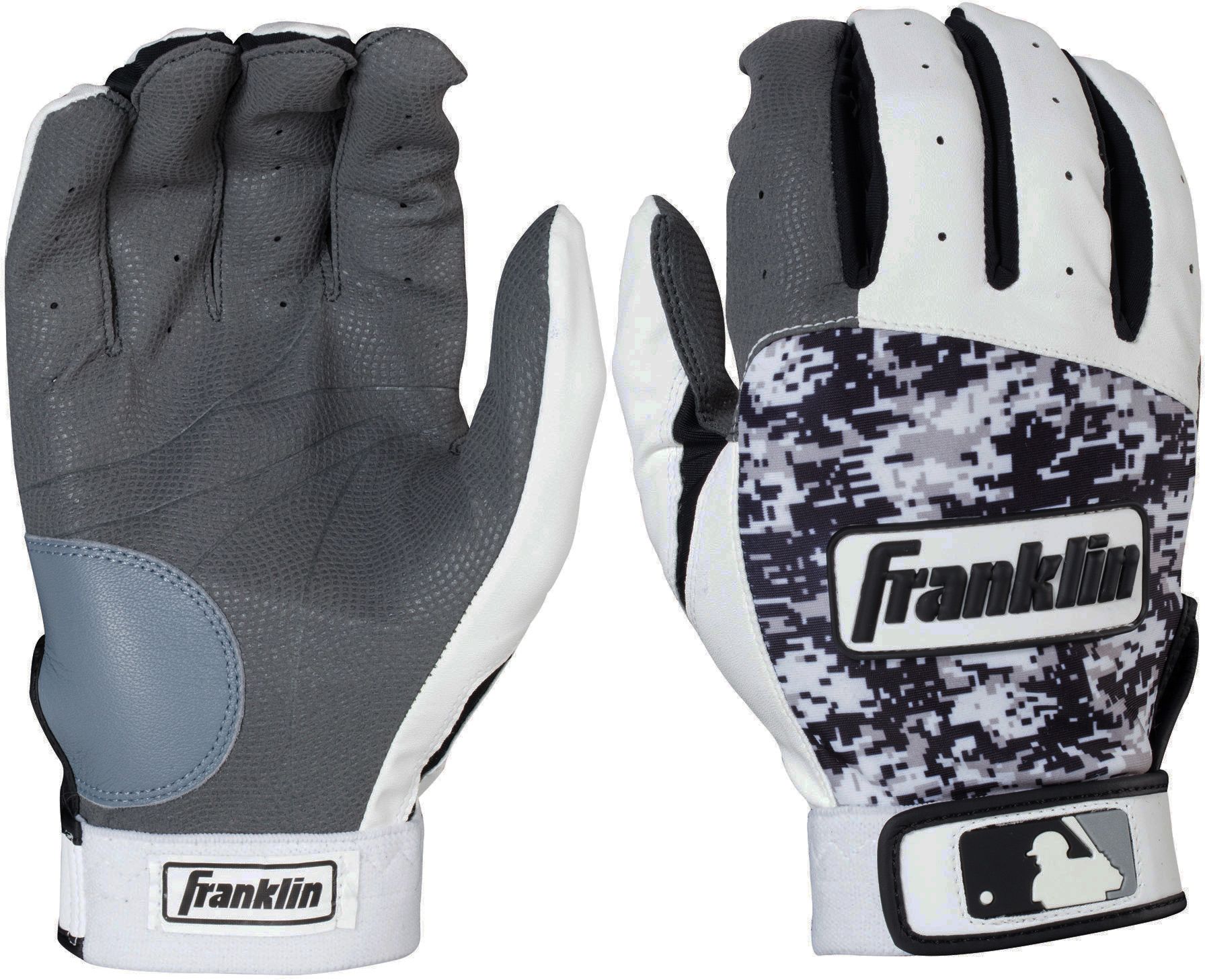 Unmatched flexibility with eye-catching style, the 2016 Franklin® Digitek Series Batting Gloves provide comfort and consistency. Multi-functional with an athletic fit and feel, the Digitek series features Tri-Curve® technology that has includes strategic flex points for less restrictive movement. The digital camo design adds some swagger in your gear, with a microfiber palm and durable leather heel patch for unbeatable quality.