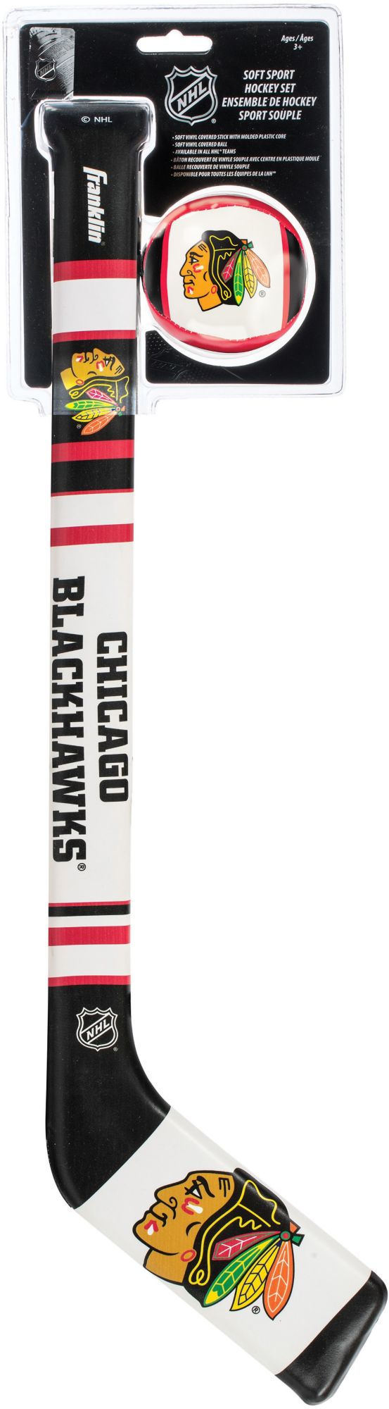 Reenact your favorite Blackhawks moments with the Franklin® Chicago Blackhawks Mini Hockey Set. Each mini hockey set includes a soft, team-inspired hockey stick and hockey ball, allowing you to perfect your skills indoors or out. Team colors, logos, and wordmarks decorate each piece of the set and remind you of your team as you work on your puck handling. Score a breakaway goal for your Blackhawks with the Franklin® hockey set.