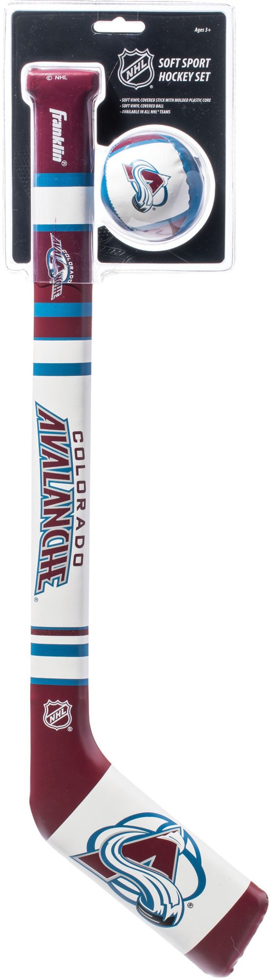 Reenact your favorite Avalanche moments with the Franklin® Colorado Avalanche Mini Hockey Set. Each mini hockey set includes a soft, team-inspired hockey stick and hockey ball, allowing you to perfect your skills indoors or out. Team colors, logos, and wordmarks decorate each piece of the set and remind you of your team as you work on your puck handling. Score a breakaway goal for your Avalanche with the Franklin® hockey set.