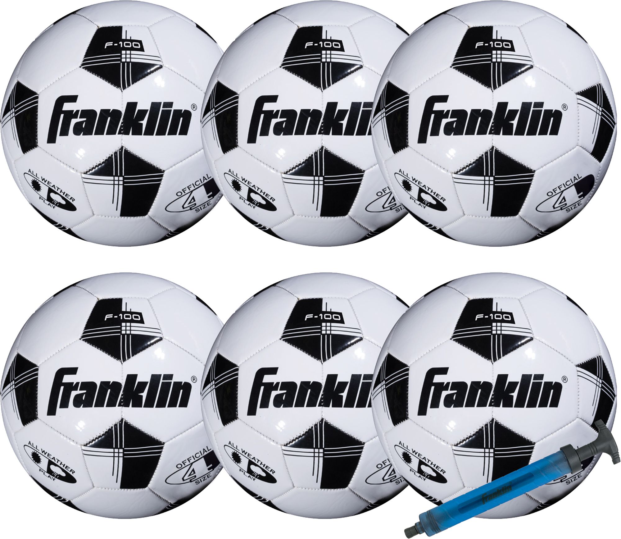 Includes Six Competition 100 Soccer Balls and one pump
