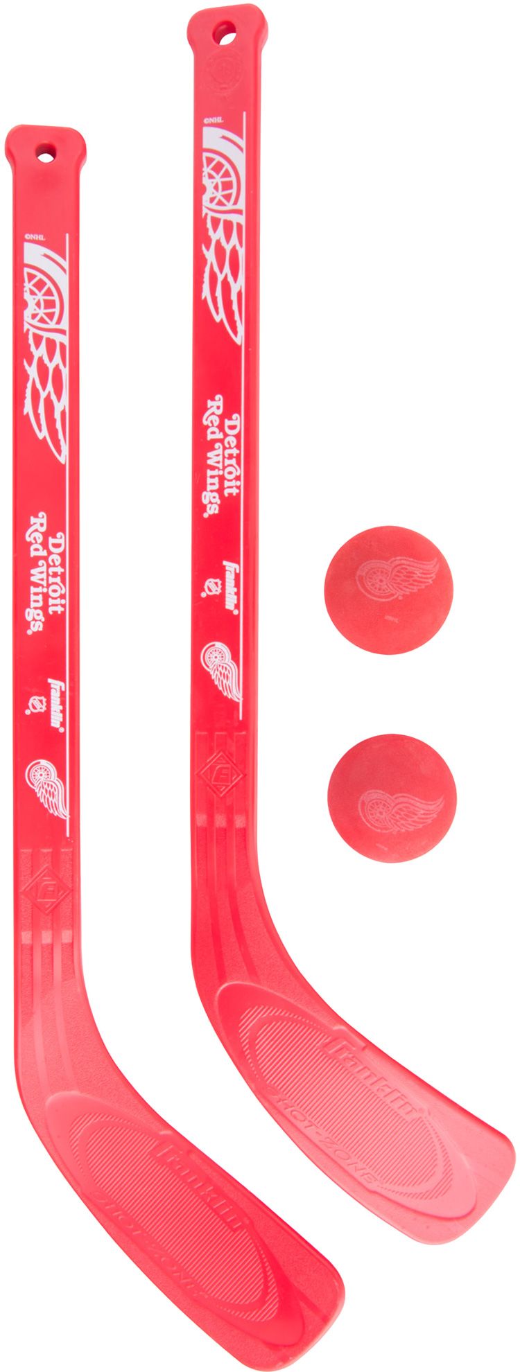 Earn your way onto the top power play unit with the Franklin® Detroit Red Wings Mini Stick Set. You are a natural born scorer thanks to the SHOT ZONE® textured blade. High-impact plastic offers durable construction while the 20” stick keeps you in scoring range at all times. Salute your favorite team with the Red Wings wordmark and logo scanning your shaft. You are a mini hockey master with the Franklin® stick set.