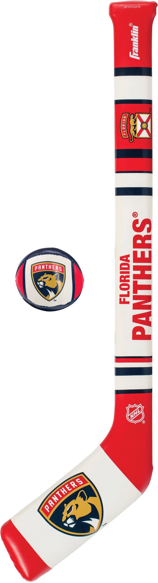 Reenact your favorite Panthers moments with the Franklin® Florida Panthers Mini Hockey Set. Each mini hockey set includes a soft, team-inspired hockey stick and hockey ball, allowing you to perfect your skills indoors or out. Team colors, logos, and wordmarks decorate each piece of the set and remind you of your team as you work on your puck handling. Score a breakaway goal for your Panthers with the Franklin® hockey set.