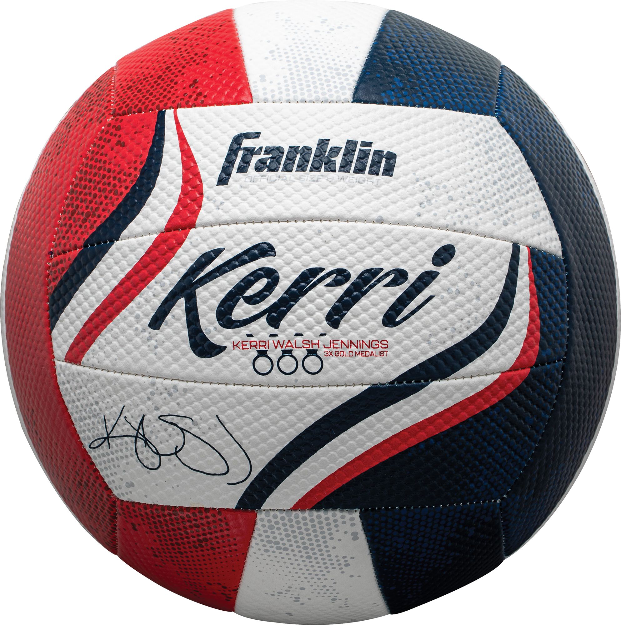 Franklin Sports has partnered with 3x USA Olympic gold medalist Kerri Walsh Jennings to create this official size, America-inspired, Olympic team colors volleyball. Designed with the world’s most inspirational woman’s volleyball player, this ball is ideal for beach and backyard fun.