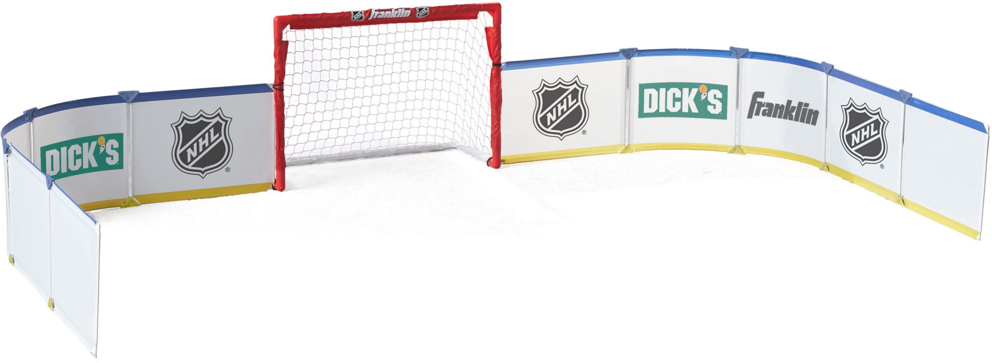 Order two sets and complete your rink! Bring the authentic hockey rink experience into your home today with Franklin Sports' Mini Hockey Rink Set! This set comes complete with 10 connectable side board panels to help construct a half rink right in your basement, playroom or wherever you play knee hockey. The fully assembled panels create a 9' wide x 7' long playing area, that you can customize to fit the shape and size of your room with ease. You can even get two sets to help complete the full rink for added fun! Plus, the sideboards go together and break down in no time with specifically designed snap-lock connections so you can spend more time in the game and less time setting up. This officially licensed NHL set is the perfect gift for any young hockey fan. So help your kids take their knee hockey game to the next level and grab your Franklin Sports Mini Hockey Rink Set today!