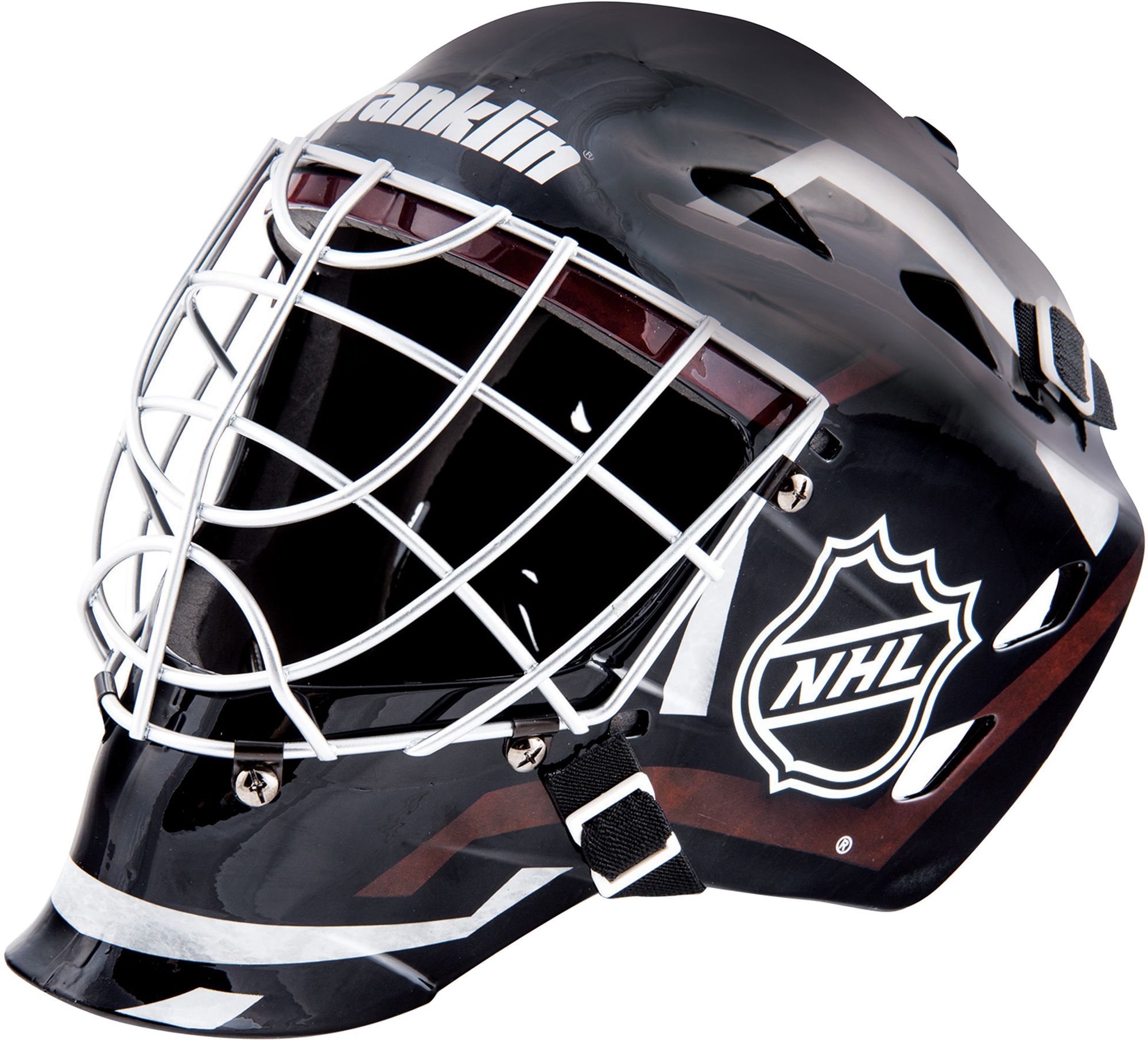 Make the game-winning save in style this season with the Franklin® NHL® Street Hockey Goalie Mask. With an ACD Vented shell and molded, high-impact ABS plastic, this Franklin® goalie helmet adds the protection you need every time you step between the pipes.