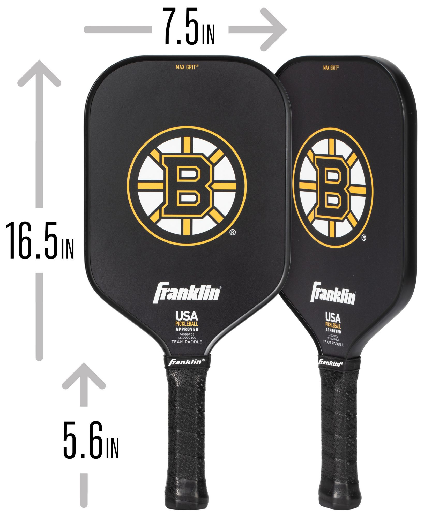 Franklin Sports' NHL Pickleball Paddles are the perfect way for fans of all NHL teams to hit the pickleball court in style while repping their favorite team! These premium quality pickleball paddles are designed with official NHL team logos and colors which makes them a must have piece of pickleball equipment for every hockey fan. Designed for premium performance, these pro-style pickleball paddles are constructed from top-notch components. The 13mm polypropylene core has a large sweet spot and is designed for long-lasting durability and powerful shot making. Plus the fiberglass surface layer is coated with our Max Grit grip technology to enhance the texture of the paddle head so players can add spin and control to their shots. These paddles have been approved by USA Pickleball (USAPA) for regulation and tournament play at the highest levels. So if you're a fan of the NHL and are looking to take your pickleball games to the next level, grab yourself one of Franklin Sports' NHL Team Pickleball Paddles and hit the court today!