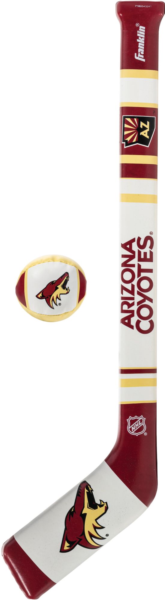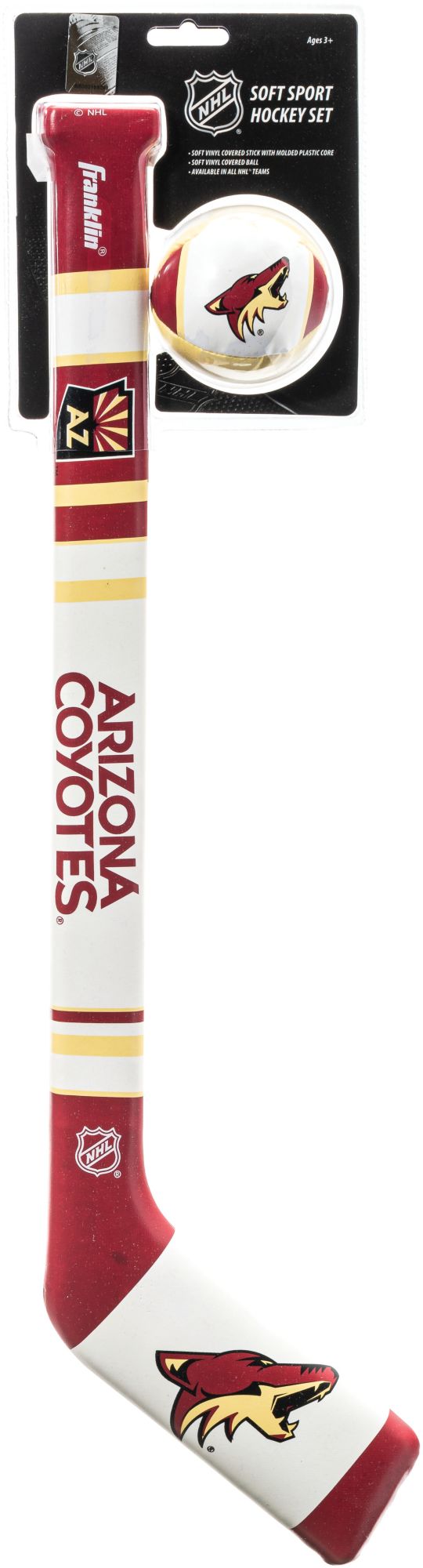Reenact your favorite Coyotes moments with the Franklin® Phoenix Coyotes Mini Hockey Set. Each mini hockey set includes a soft, team-inspired hockey stick and hockey ball, allowing you to perfect your skills indoors or out. Team colors, logos, and wordmarks decorate each piece of the set and remind you of your team as you work on your puck handling. Score a breakaway goal for your Coyotes with the Franklin® hockey set.