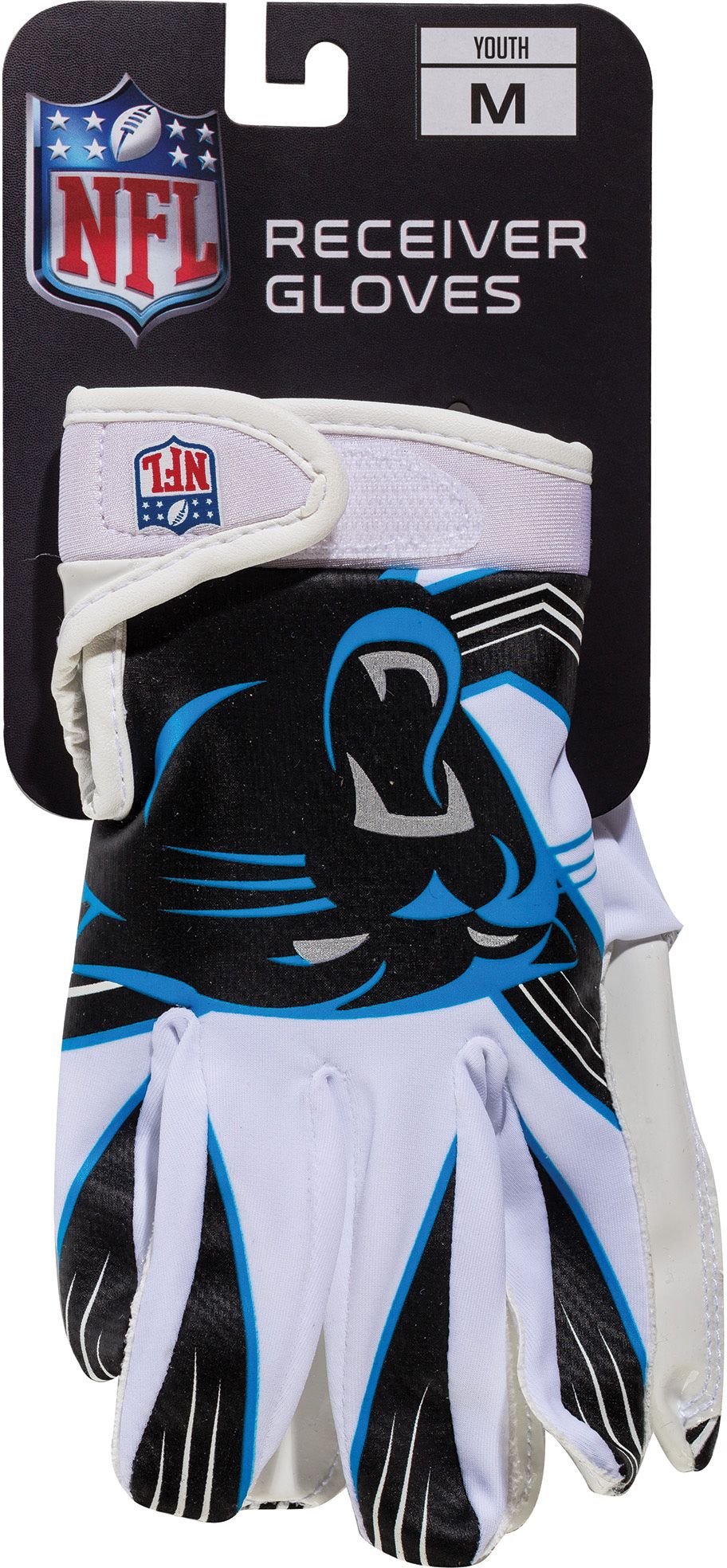 Enjoy the fit and grip you need to catch and hold a football with the Franklin® Youth Carolina Panthers Receiver Gloves.