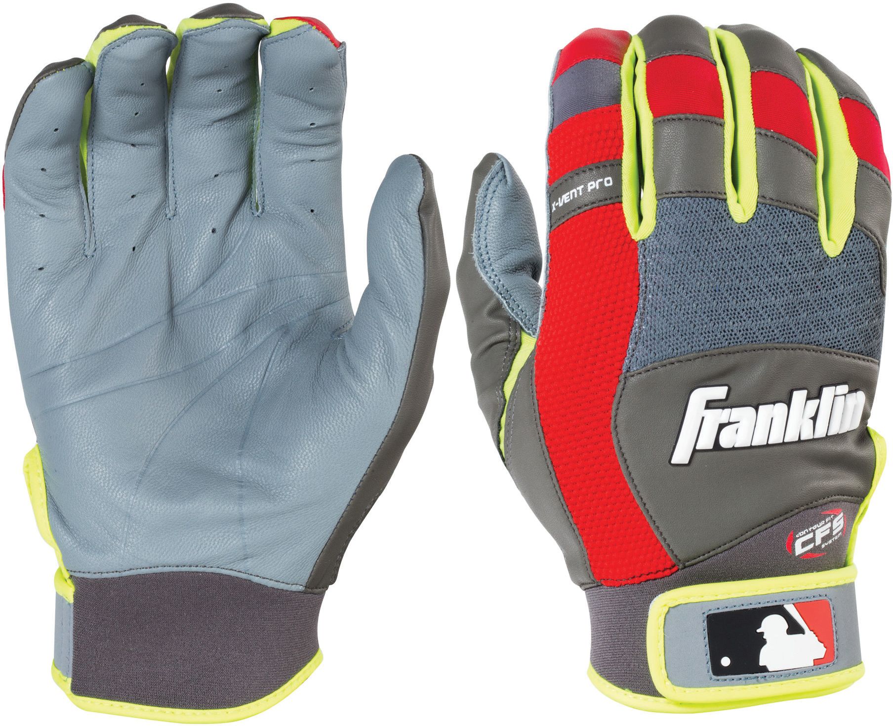 Combining a lightweight feel with flex and breathability, the Franklin® X-Vent Pro Series Batting Gloves provide the ultimate combination for maximum performance. The premium leather heel patch increases durability, with mesh vent technology that allows air to flow through and keep you cooler when the action heats up. The perfect blend of comfort, take your swings and let the Franklin® X-Vent Pro Series gloves do the rest.