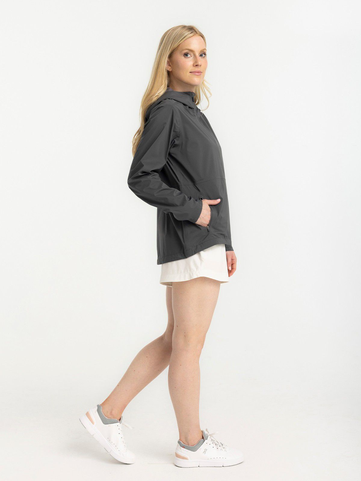 We just invented a new kind of rain jacket. Meet our whisper-quiet, 100% waterproof Cloudshield technology. Our Cloudshield Jacket gives you full waterproof protection, without the noisy, trash-bag like feel of most rain jackets. The fully seam taped, waterproof 3-layer (3L) shell features a quiet, matte face fabric, breathable waterproof membrane, and ultra-soft tricot backer for ultimate next-to-skin comfort. Structured, yet soft, you’ll question its waterproofness the first time you try it—but reach for it every time the sky opens up. Layer it over our Lightweight Fleece or make it your go-to travel shell.