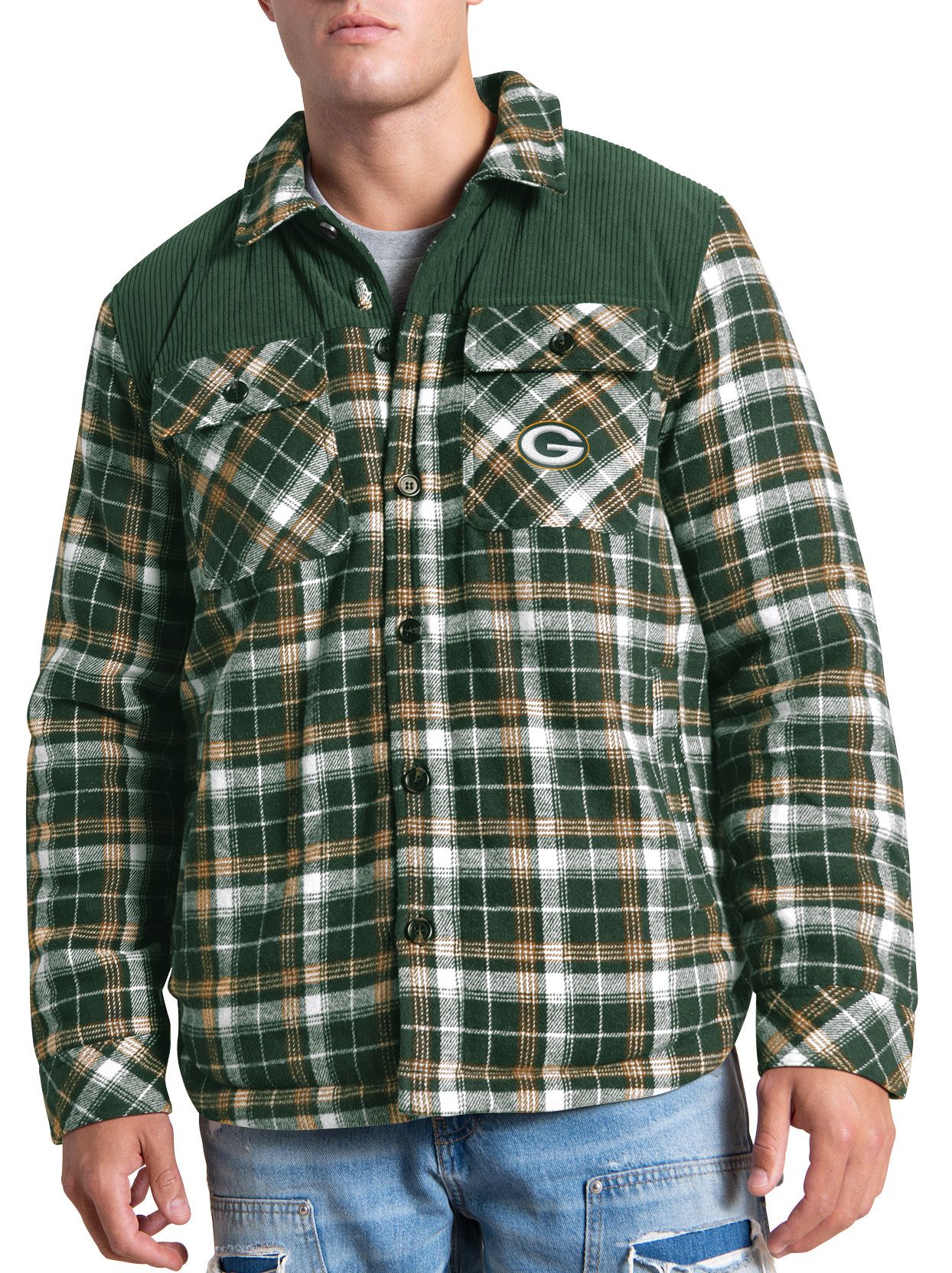 G-III Men's Green Bay Packers Green Plaid Black Shirt Jacket