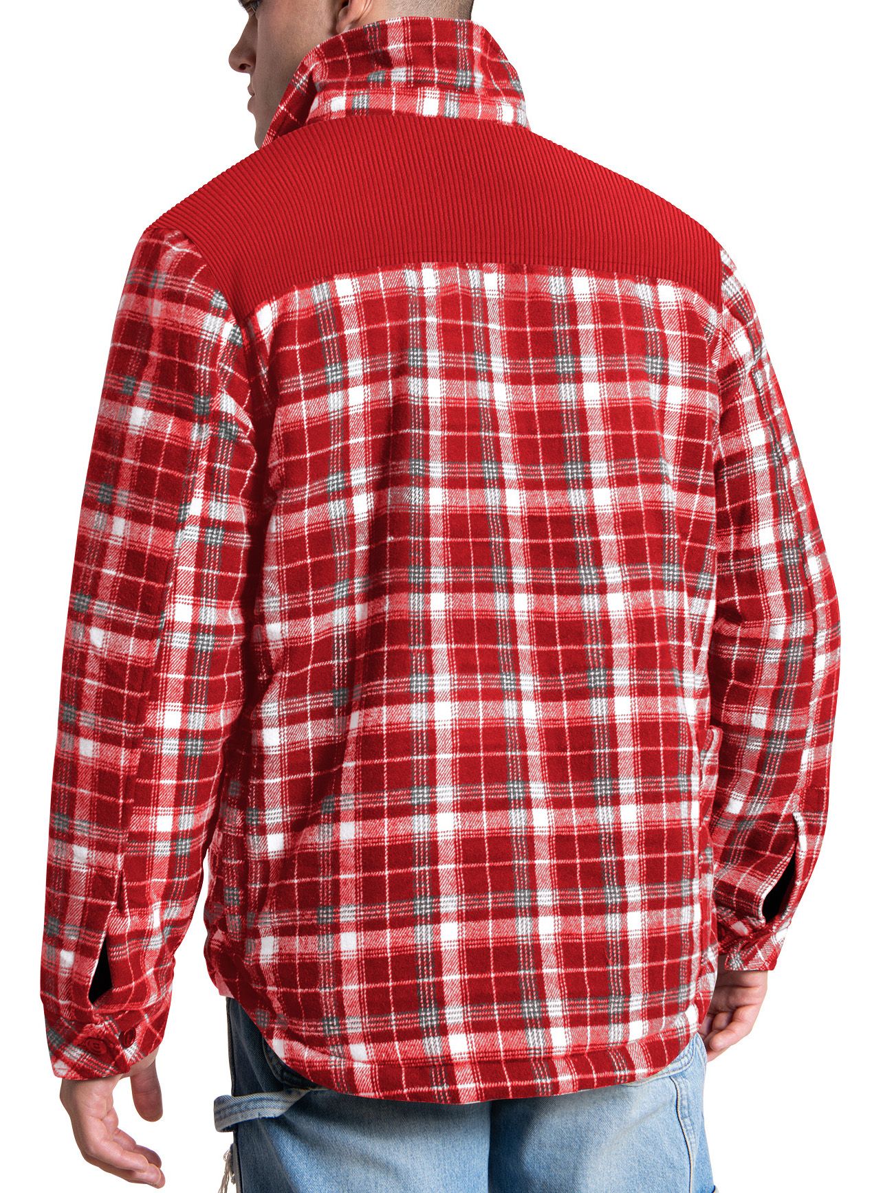 • Standard-fit, plaid shirt jacket