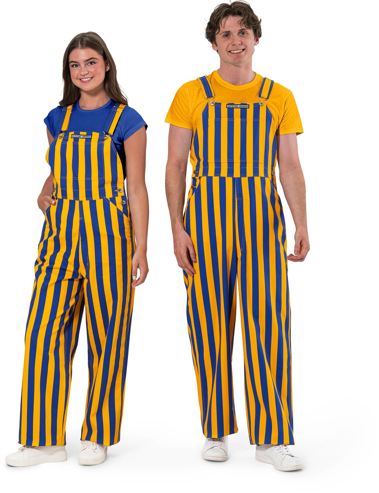 Game Bibs Adult Royal Blue/Yellow College Stripes Overalls