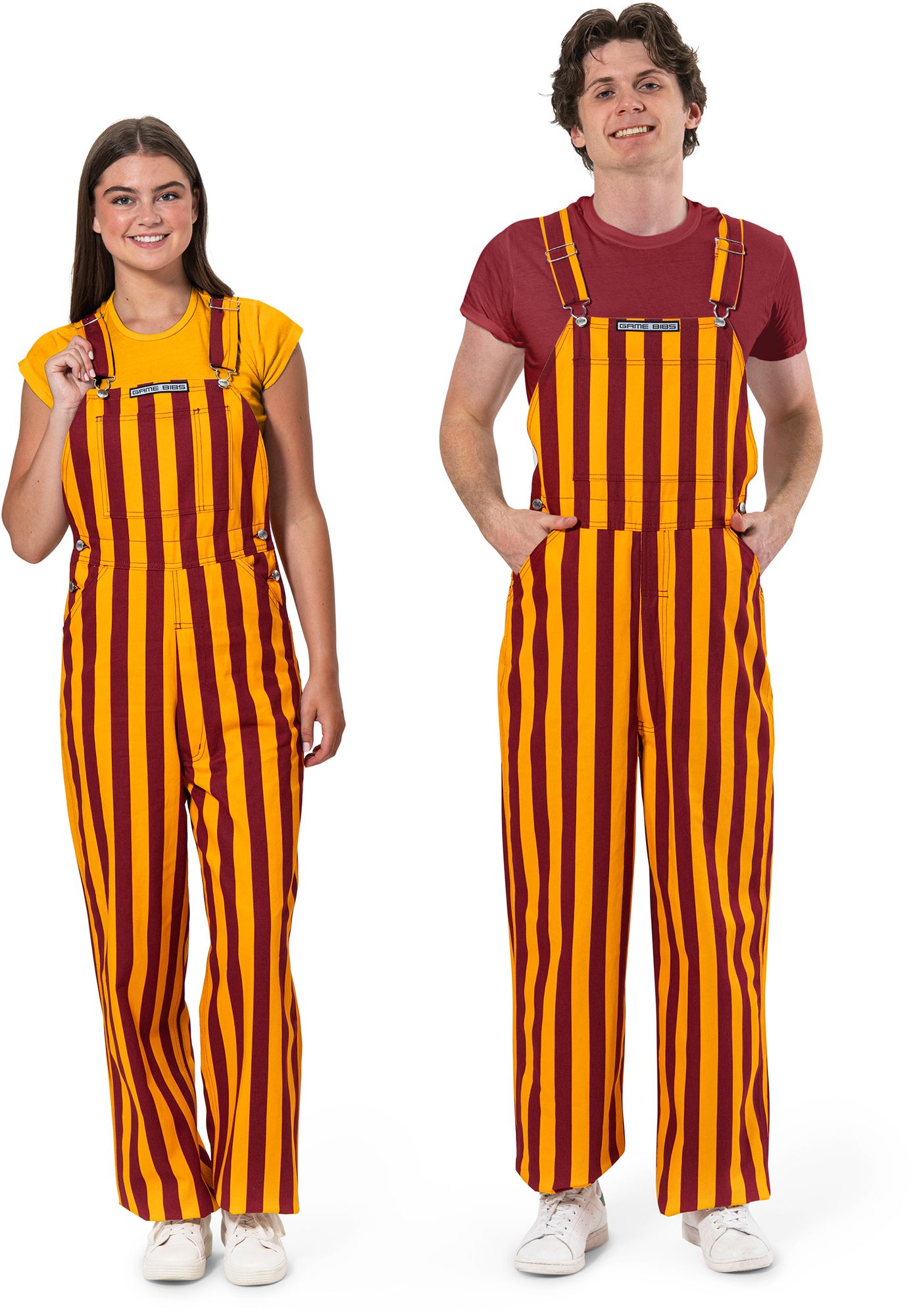 Game Bibs Adult Garnet/Gold College Stripes Overalls