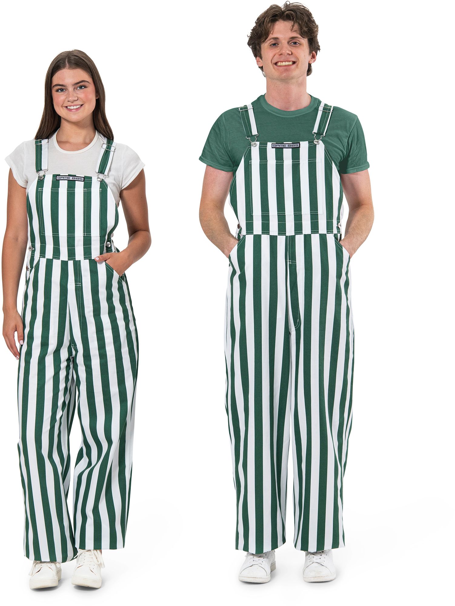 Game Bibs Adult Green/White College Stripes Overalls