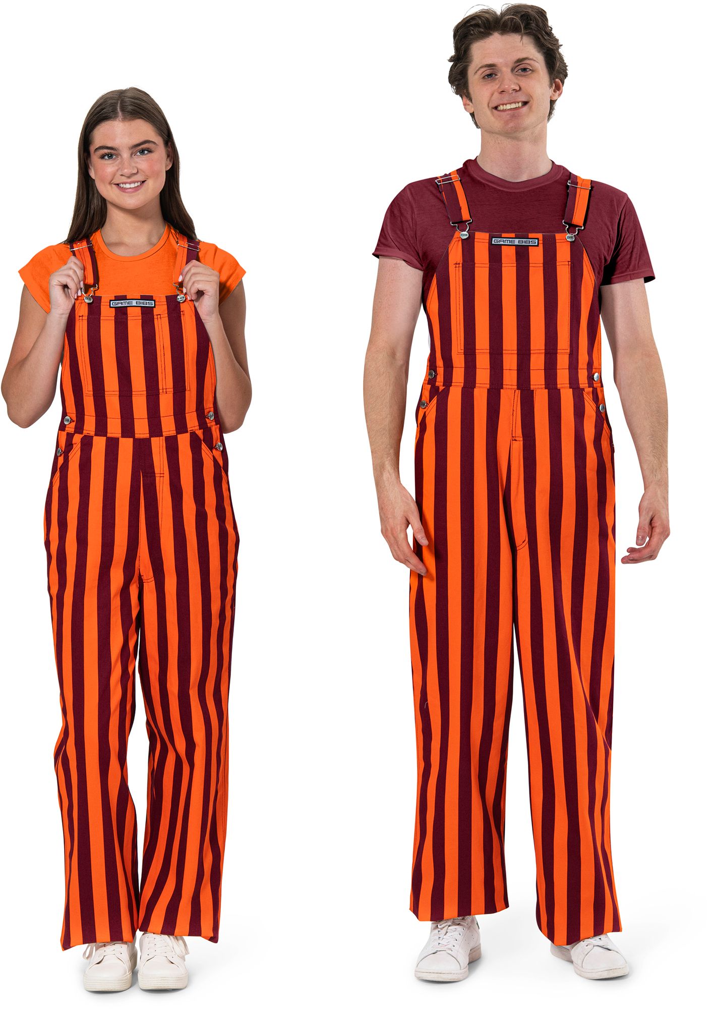 Game Bibs Adult Maroon/Orange College Stripes Overalls