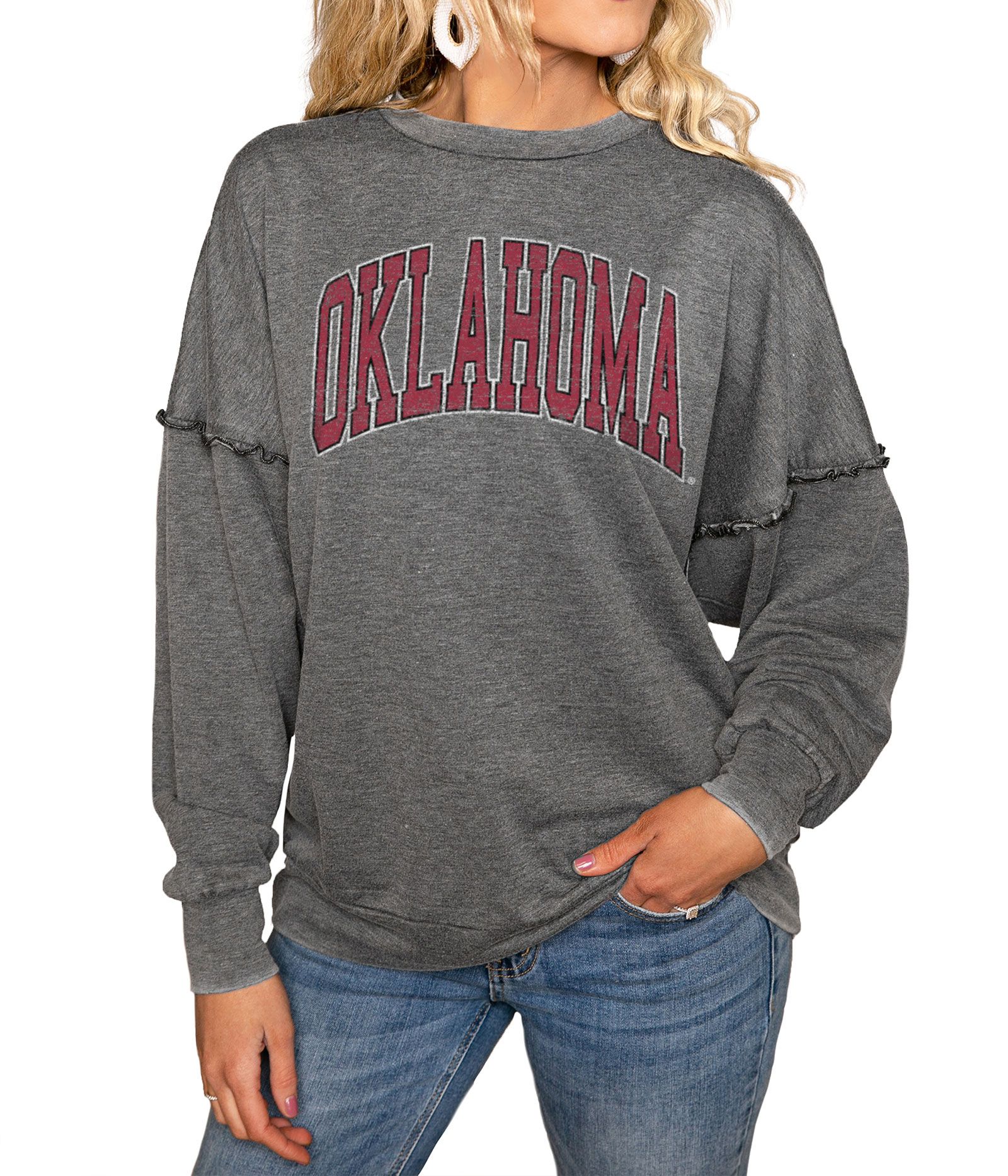 Gameday Couture Oklahoma Sooners Grey Acid Wash Crew Pullover Sweatshirt