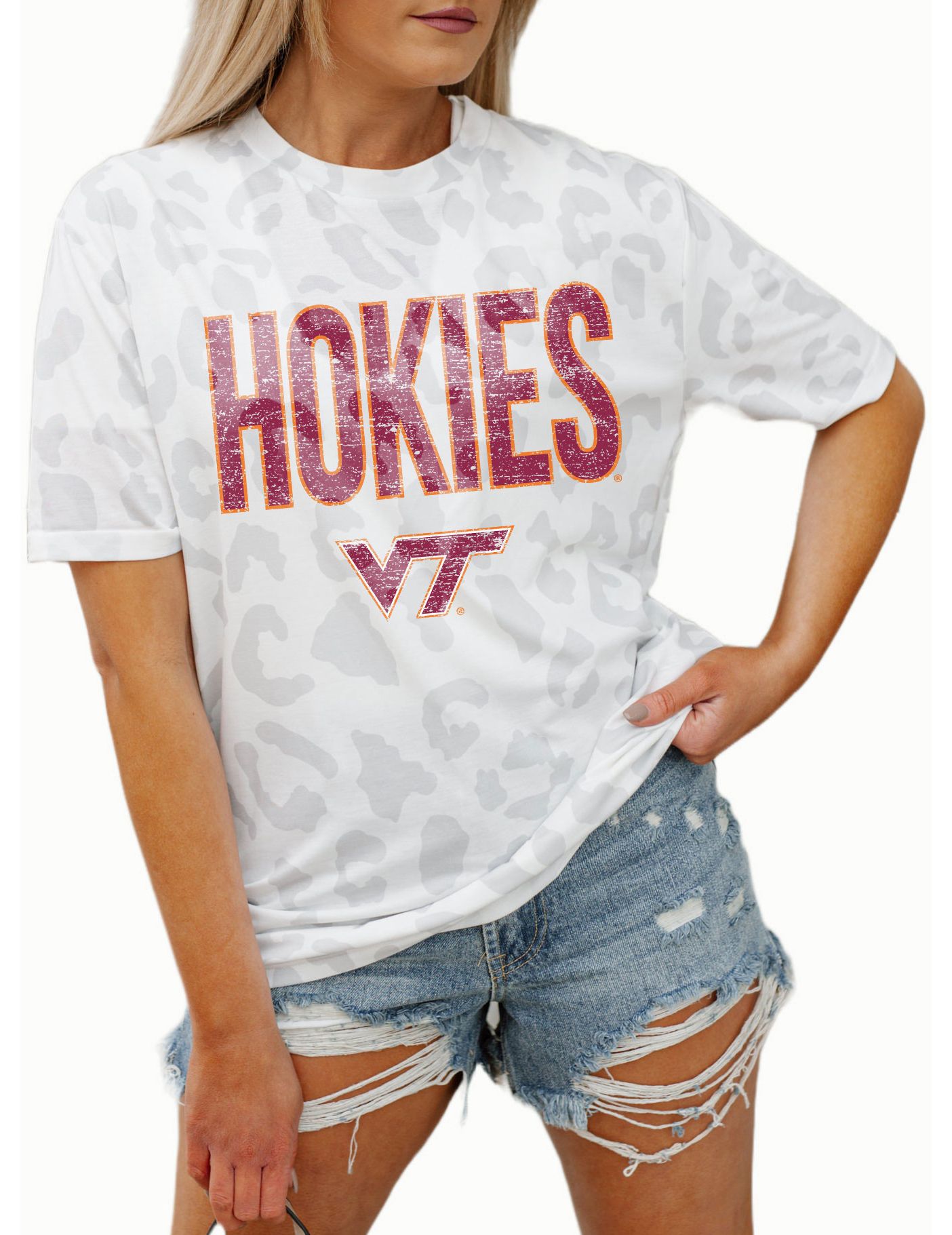 Gameday Couture Virginia Tech Hokies White Leopard T-Shirt