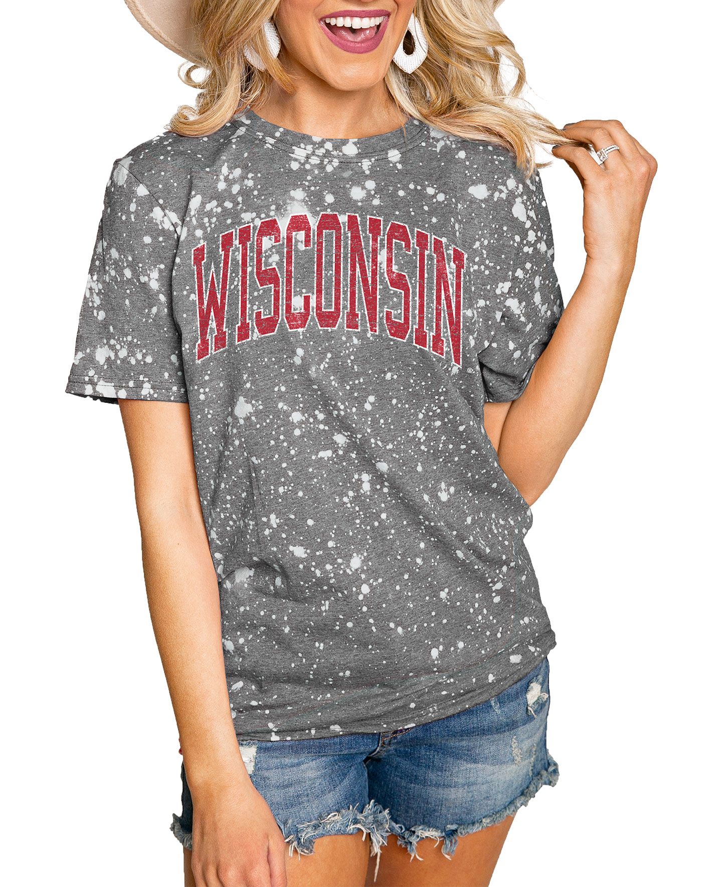 Gameday Couture Wisconsin Badgers Grey Bleached T-Shirt