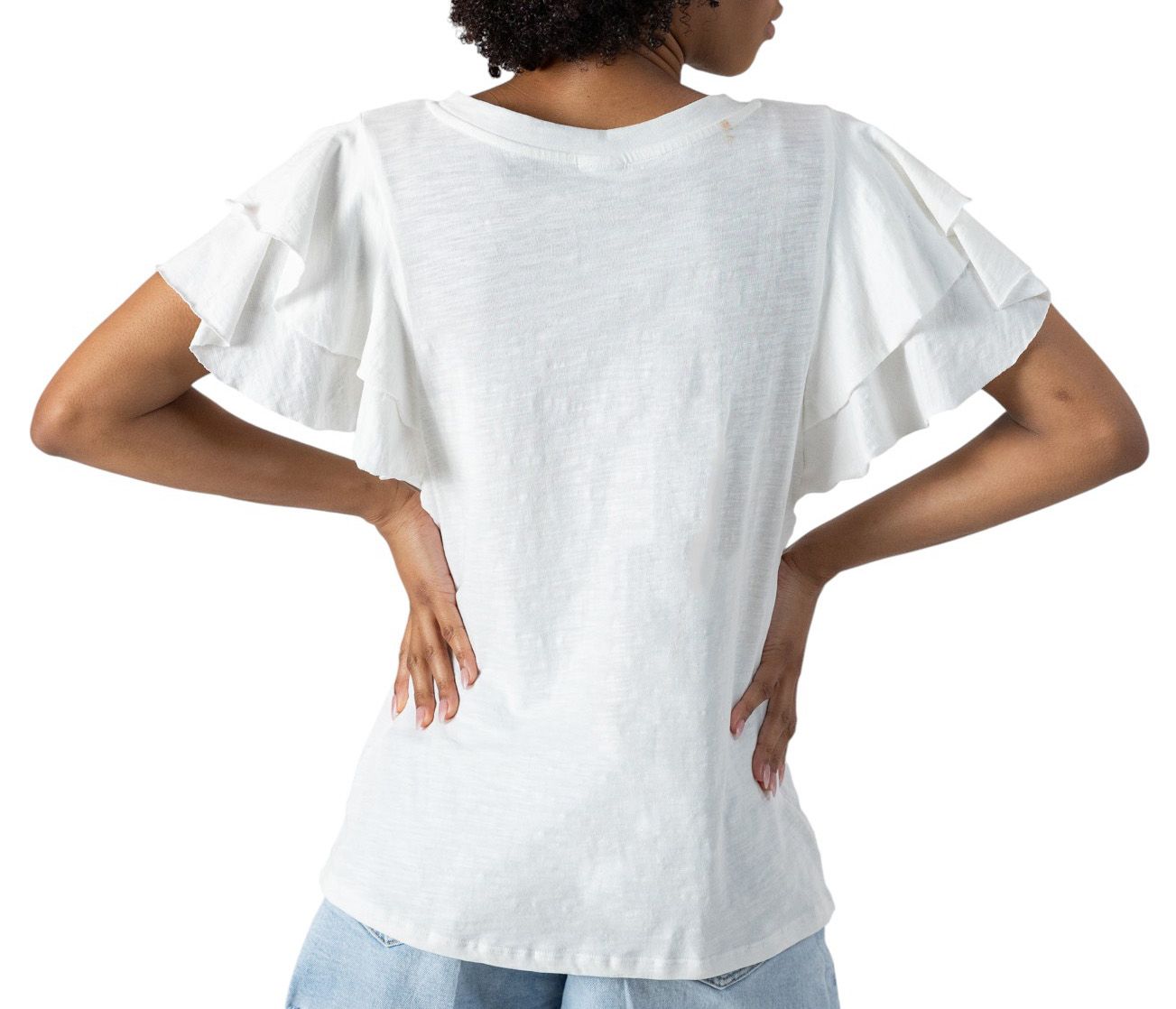 • Crew-neck t-shirt with ruffle sleeves