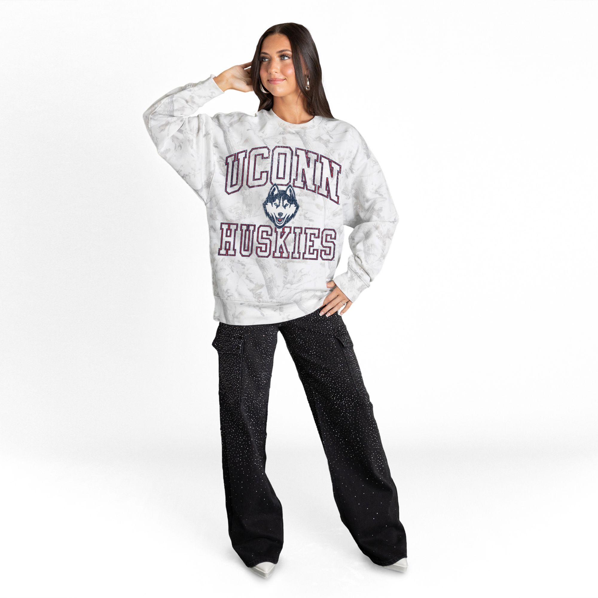 Gameday Couture Women's UConn Huskies White Camo Crewneck Sweatshirt
