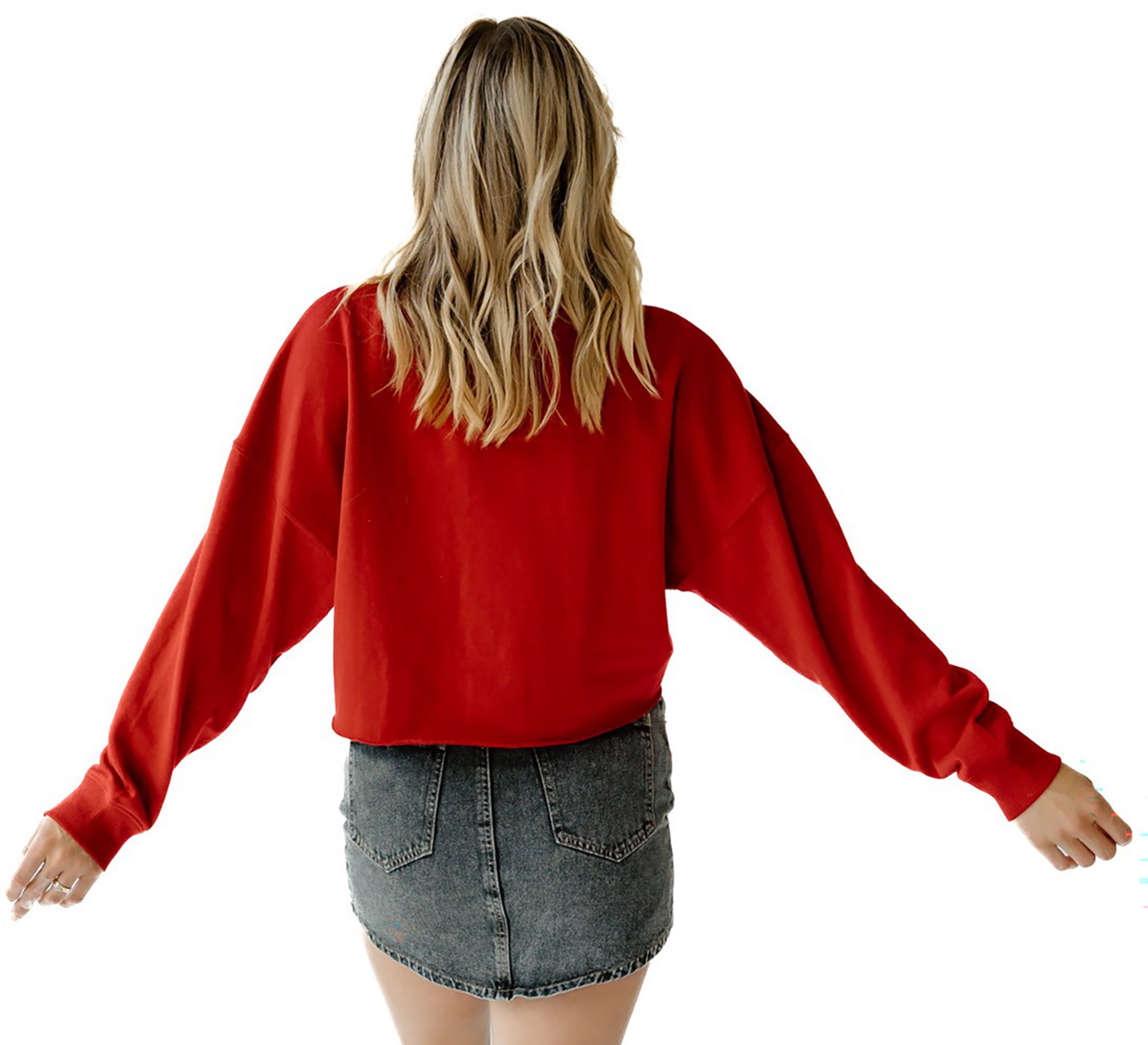 Gameday Social Women's Alabama Crimson Tide Crimson Chenille Cropped Crewneck Sweatshirt