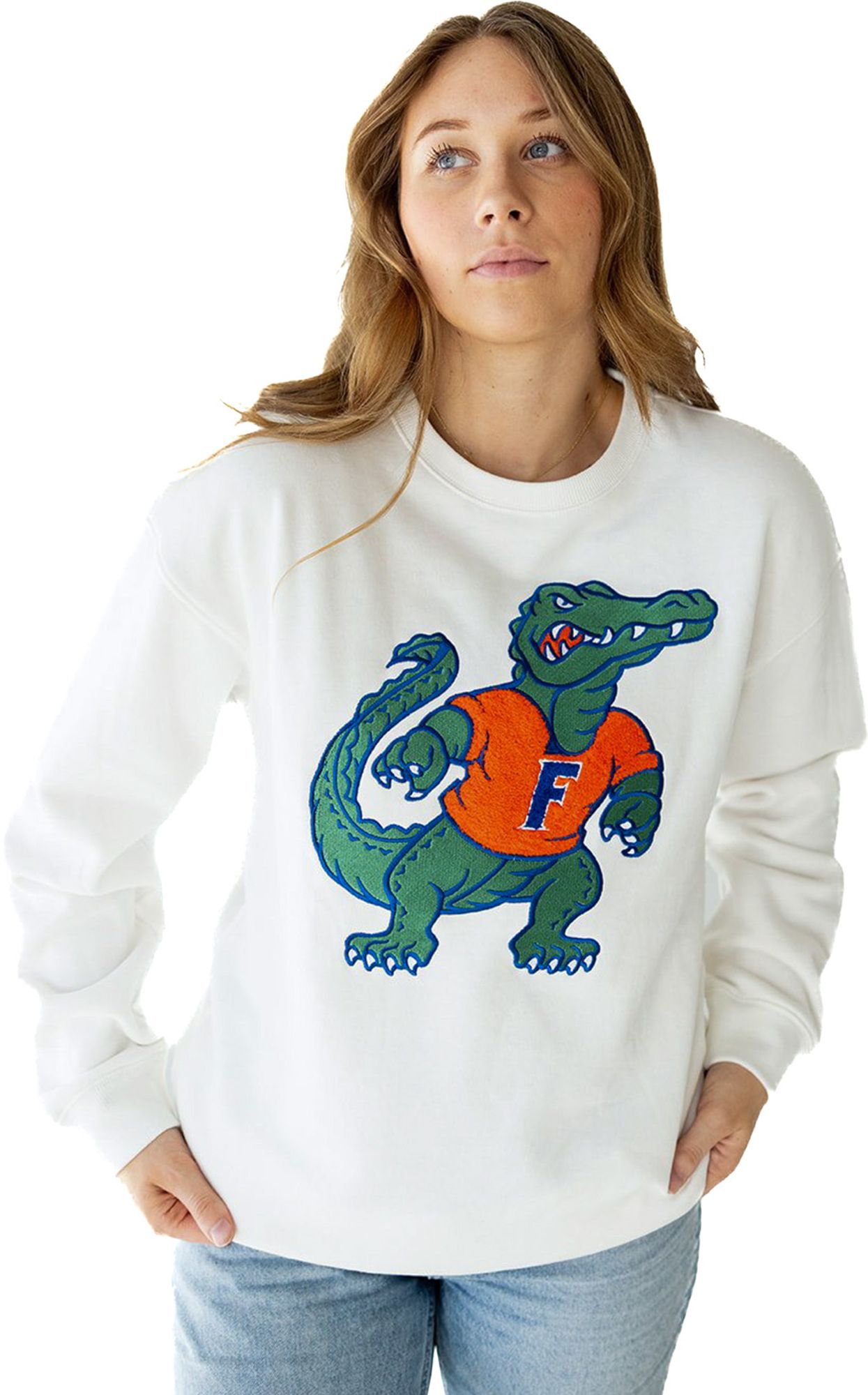 Gameday Social Women's Florida Gators White Chenille Mascot Crewneck Sweatshirt