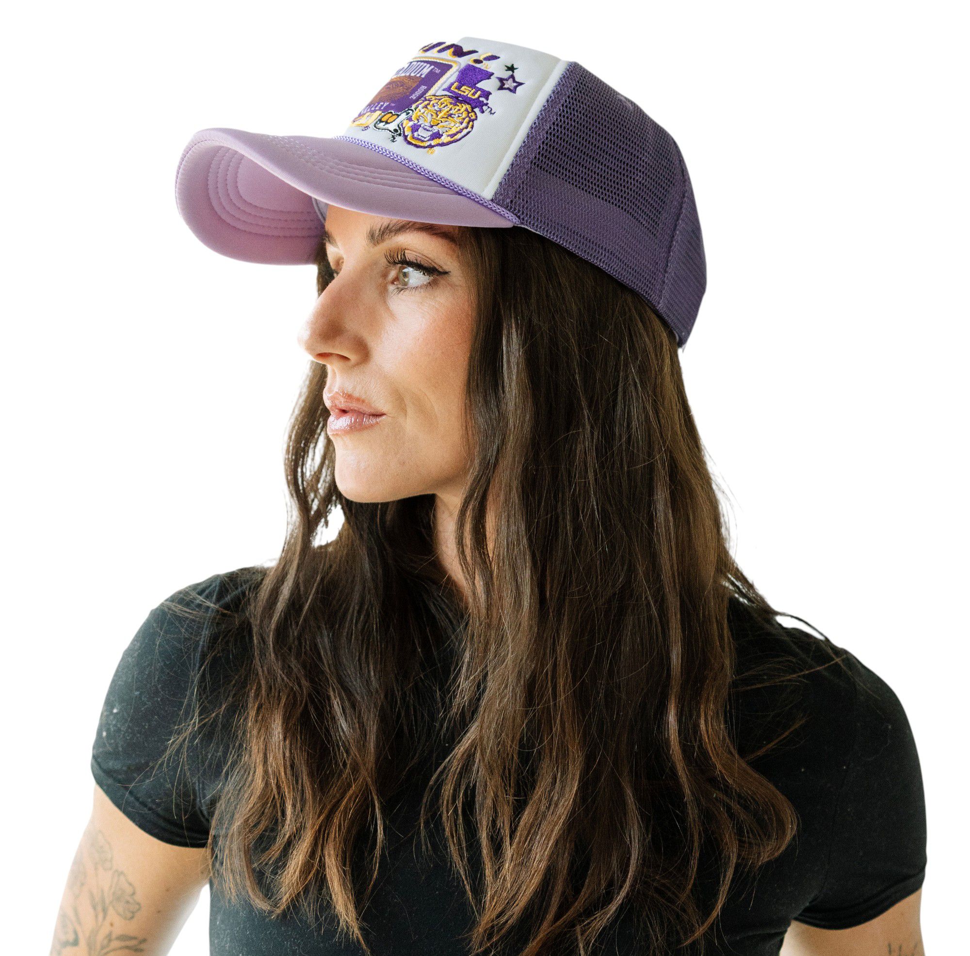 Gameday Social Women's LSU Tigers Lavender Layered Patch Foam Trucker Hat