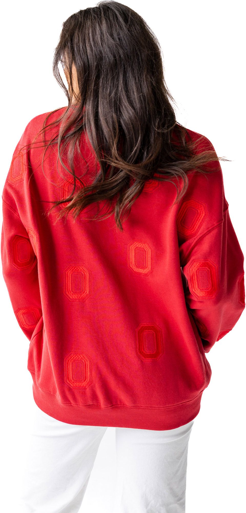 The sweatshirt is oversized, so if you want form fitting this is not for you. I love the comfort of the oversized sweatshirt. The block O design is unique, and I get lots of compliments on game day & everyday