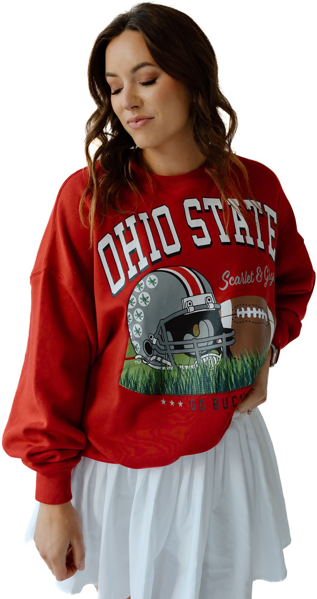 Gameday Social Women's Ohio State Buckeyes Red Malone Multimedia Fleece Crewneck Sweatshirt