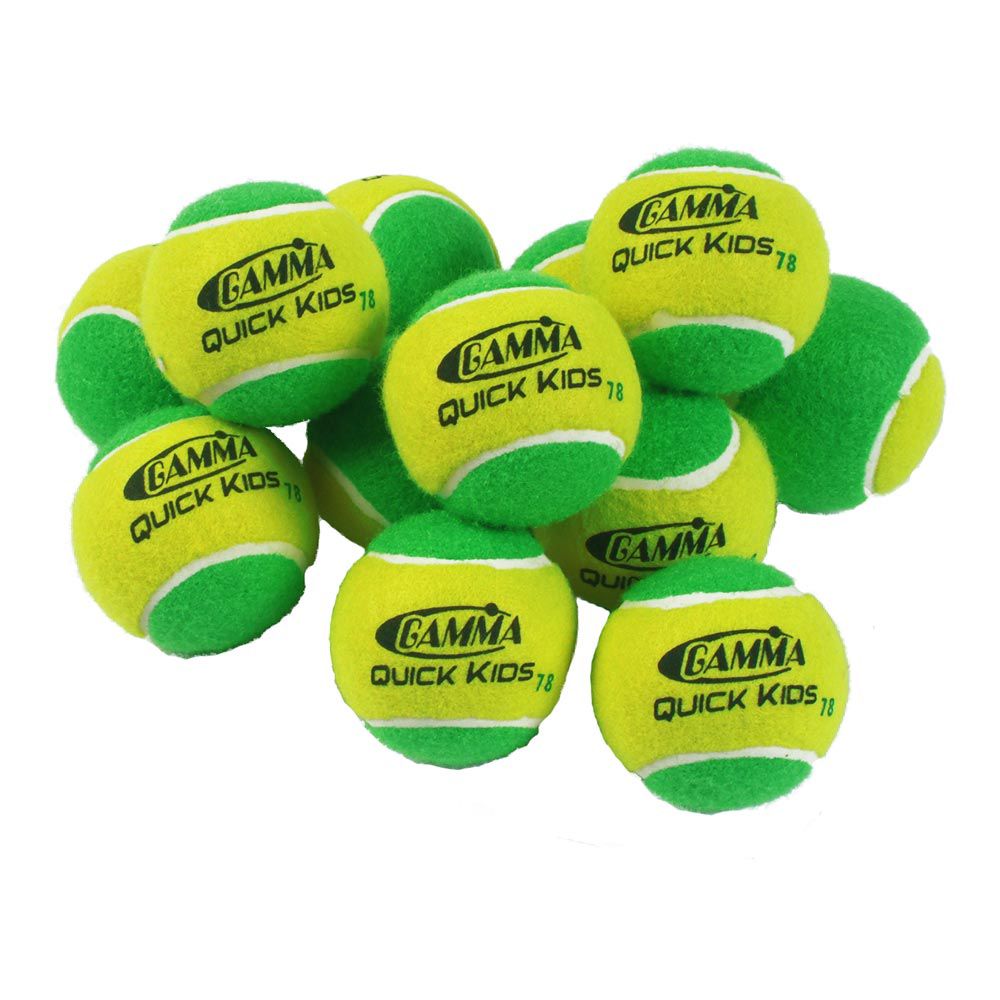 The GAMMA ® Quick Kids 78 Ball is for kids ages 10 & under learning to play tennis on a 78' full court with the QuickStart or Play N' Stay format. These green and yellow tennis balls have 25% reduced speed compared to a standard tennis ball and the two-tone design helps young players learn and practice spin. Approved for 10 & Under tournament play.