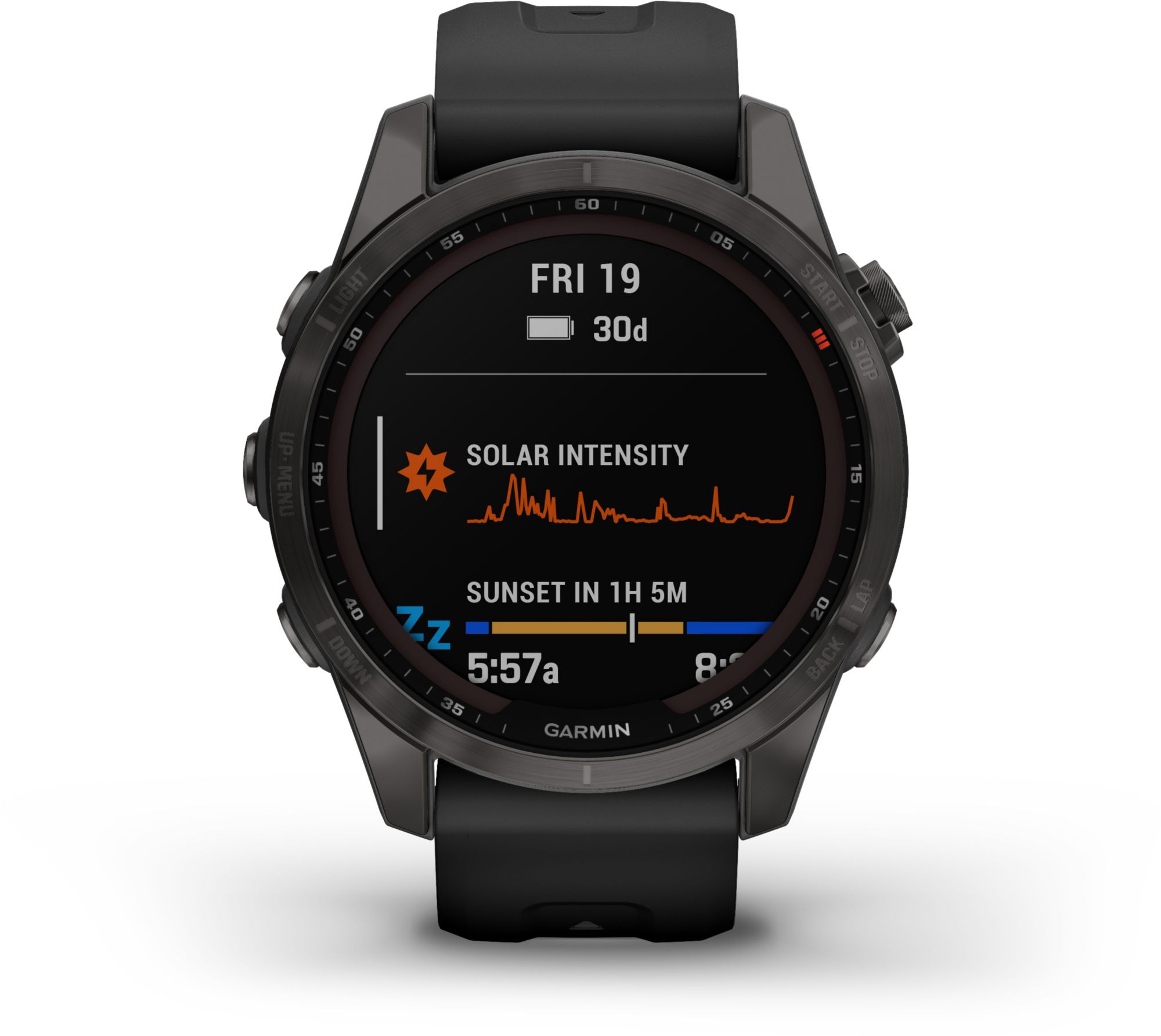 There are 7 days in a week. And the fenix® 7S Sapphire Solar multisport GPS watch is built to go strong for all of them. It’s styled for smaller-sized wrists and has a scratch-resistant Power Sapphire™ solar charging lens for the battery life to sustain your athletic and outdoor challenges.