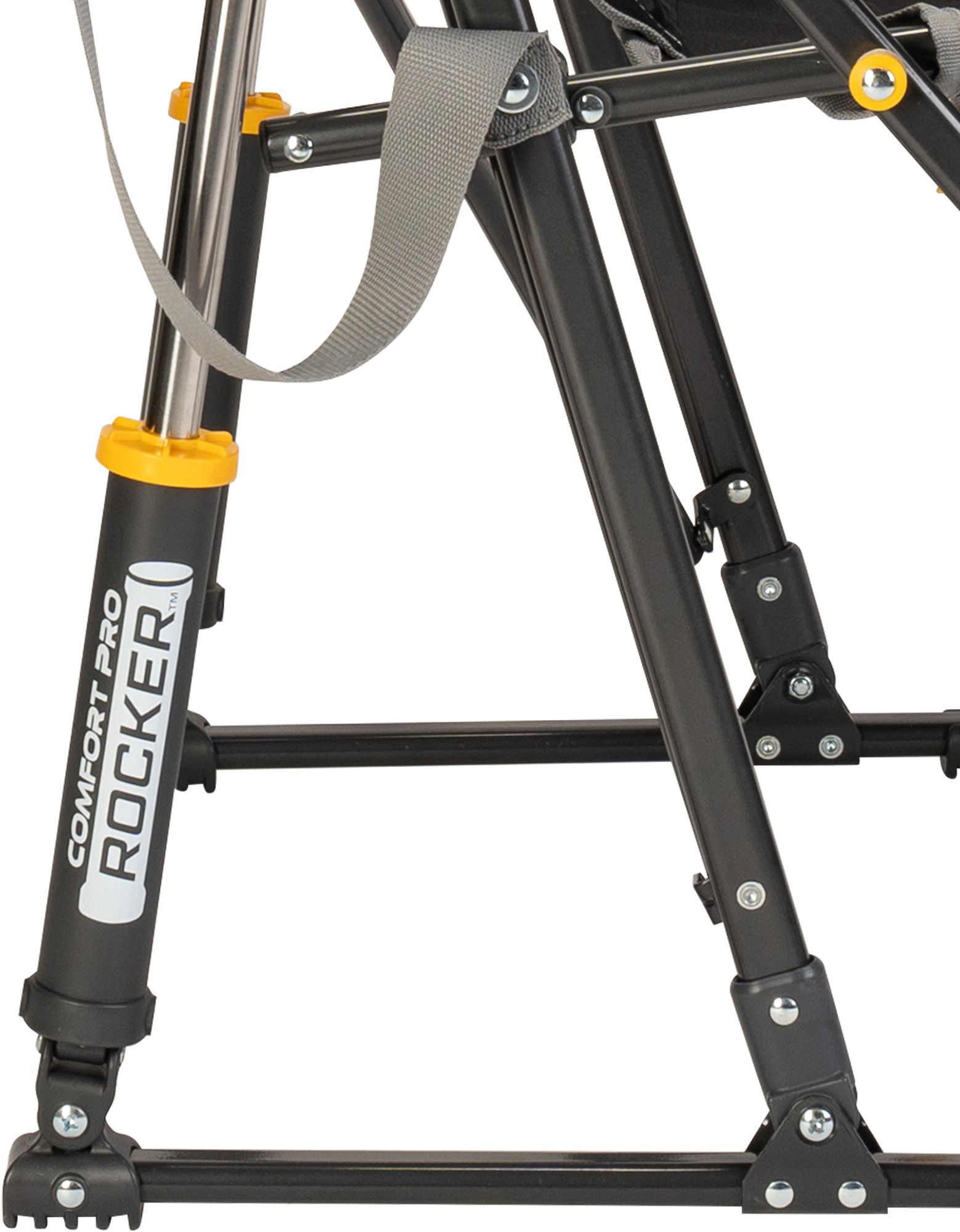 The GCI Outdoor Comfort Pro Rocker™ is your ticket to ultimate relaxation. Featuring a taller backrest and laid-back seating angle, along with innovative Spring-Action Rocking Technology™ for a smooth rocking motion, it delivers the kind of comfort that makes you forget you're outdoors. The sturdy steel frame supports up to 250 lbs. and includes a shoulder carry strap for easy transport wherever adventure leads you. On warm, sunny days, the breathable mesh backrest helps keep you cool and dry, providing the perfect seat for sideline cheering, pre-game tailgating, or backyard barbecuing. It also comes with a handy beverage holder for your favorite drink and a side pocket for quick access to photos, playlists or checking the score. When it’s time to head home, collapse the chair and secure it in a folded position with the attached closure tab for quick and simple pack up.