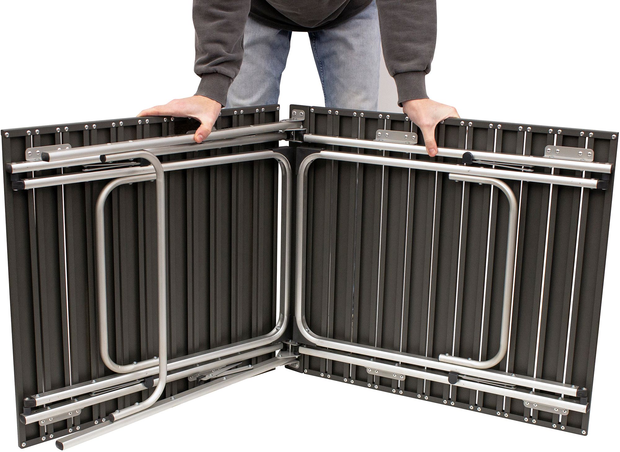 [This review was collected as part of a promotion.] The GCI Outdoor slim-fold table is the perfect camping table. It is lightweight, stable and easy to set up. The kids used it to play with their toys on during a hot day and the table stayed cool. I am hooked.