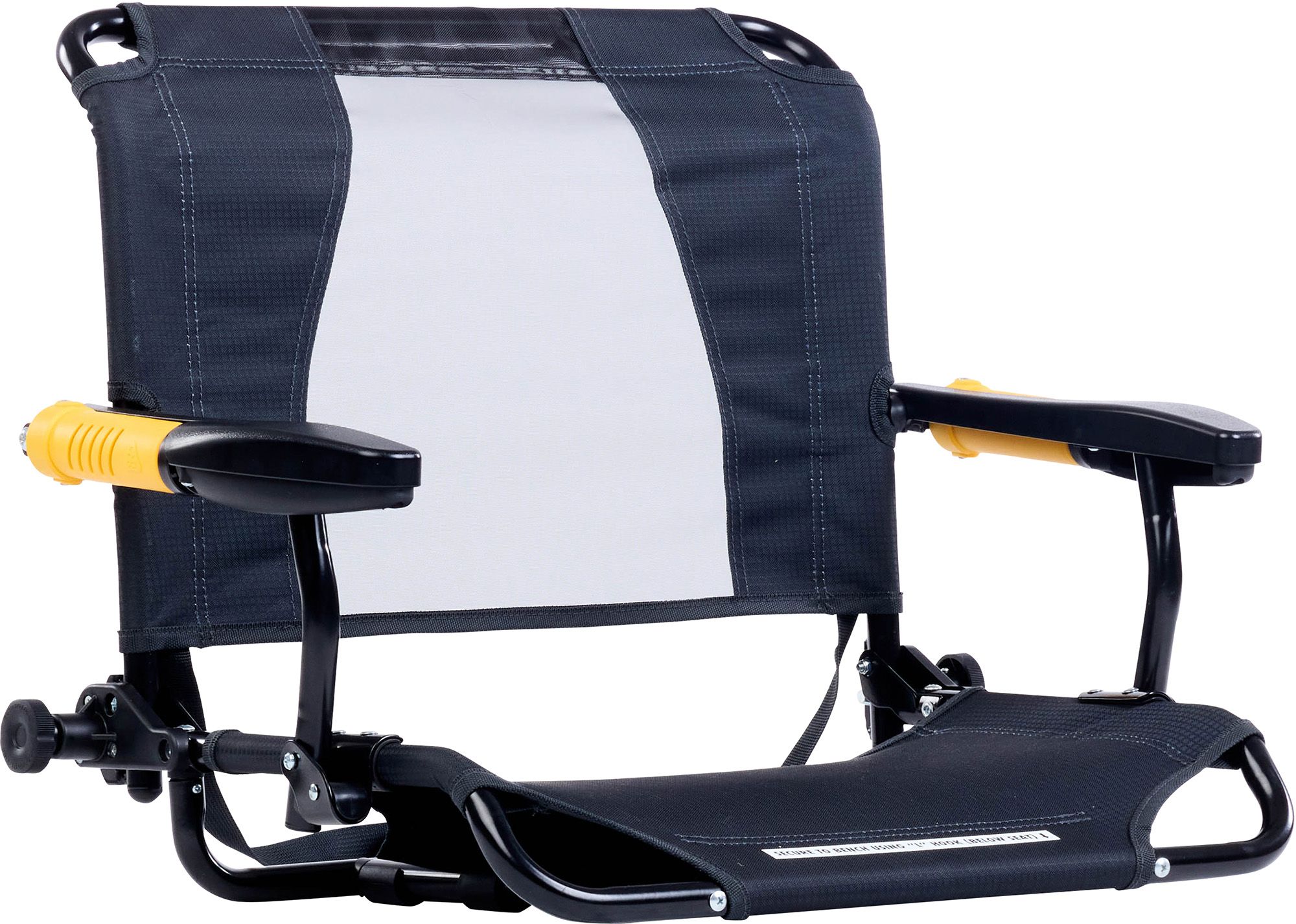Ensure every game is a win with the GCI Outdoor Stadium Rock-Cliner™. Crafted for all-day comfort from the opening whistle to the final buzzer, its patent-pending Flex-Recline Shock System™ lets you choose between a rocking motion or locking the backrest upright for the perfect view of the action. With an elevated steel frame and a fabric seat that holds up to 330 lbs., you can say goodbye to the discomfort of sitting on hot metal stands, cold benches, and hard surfaces.