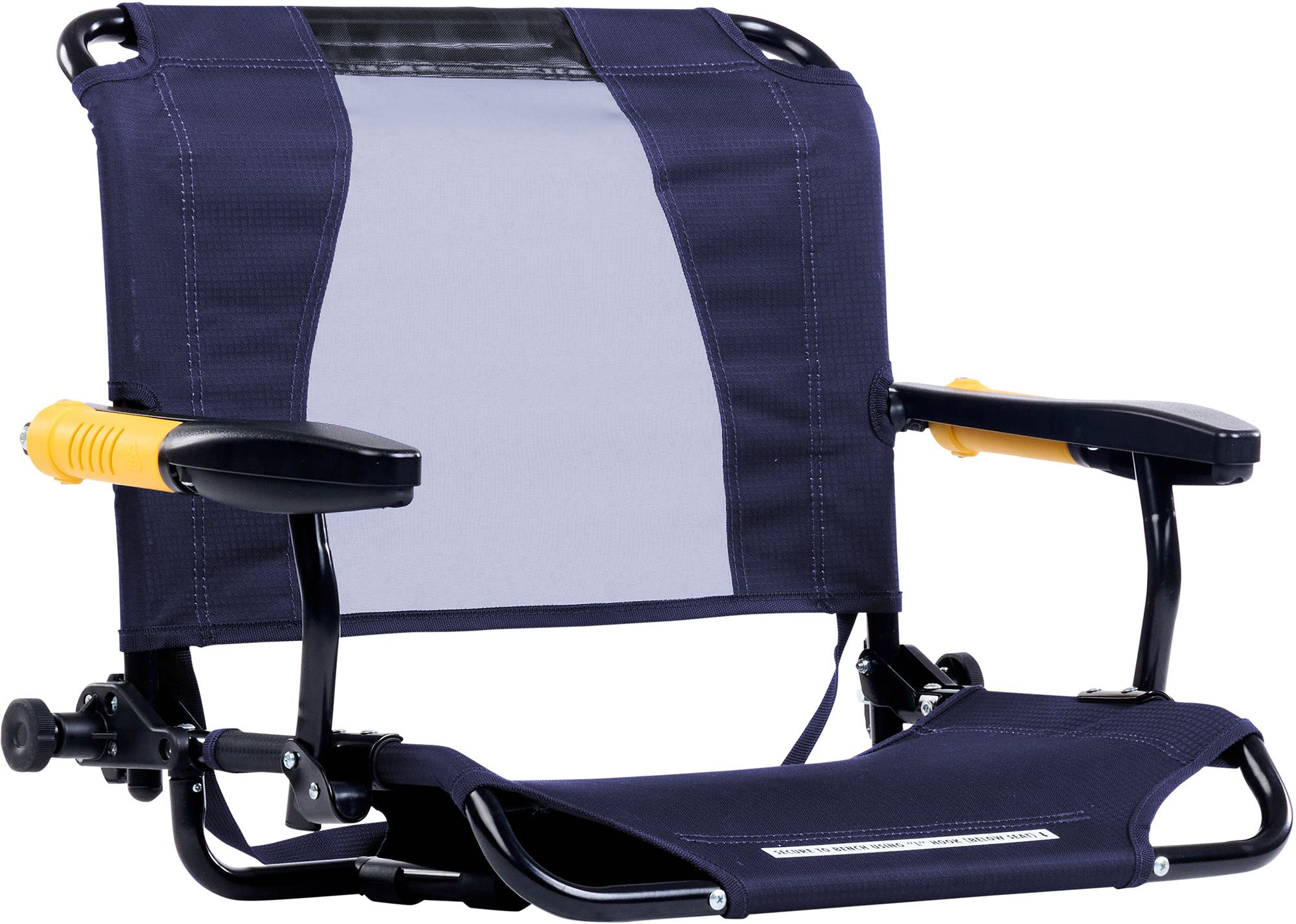 Ensure every game is a win with the GCI Outdoor Stadium Rock-Cliner™. Crafted for all-day comfort from the opening whistle to the final buzzer, its patent-pending Flex-Recline Shock System™ lets you choose between a rocking motion or locking the backrest upright for the perfect view of the action. With an elevated steel frame and a fabric seat that holds up to 330 lbs., you can say goodbye to the discomfort of sitting on hot metal stands, cold benches, and hard surfaces.