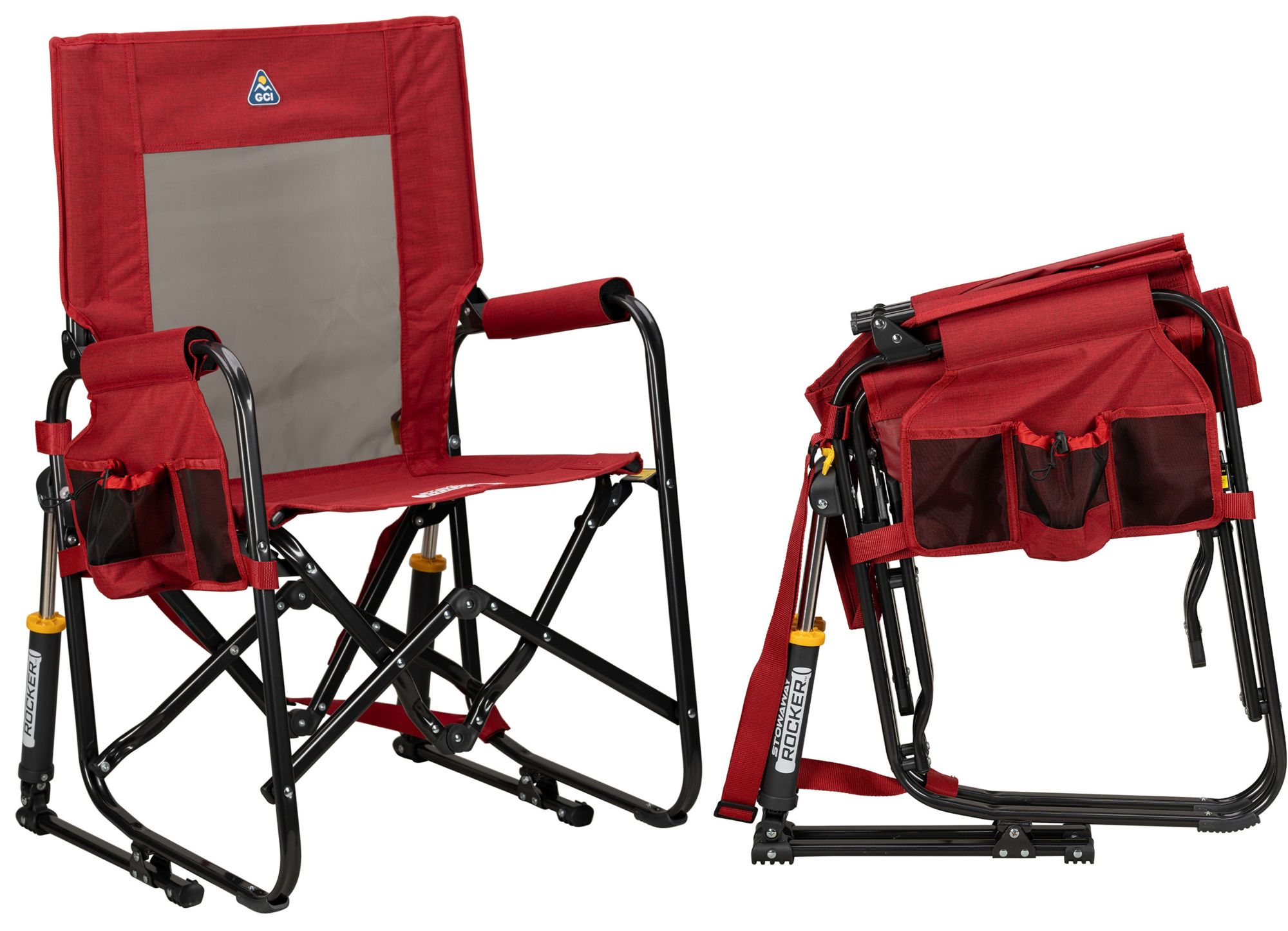 GCI Outdoor has revolutionized outdoor seating with the space-saving Stowaway Rocker—a portable rocking chair that features elevated comfort designed to go wherever you go. When folded, it’s 35% more compact than the standard Rocker, leaving more room for your sports or tailgating gear. Featuring our patented Spring-Action Rocking Technology™ for a smooth rocking motion, a higher backrest for extra shoulder and back support, and padded armrests for hours of relaxation.