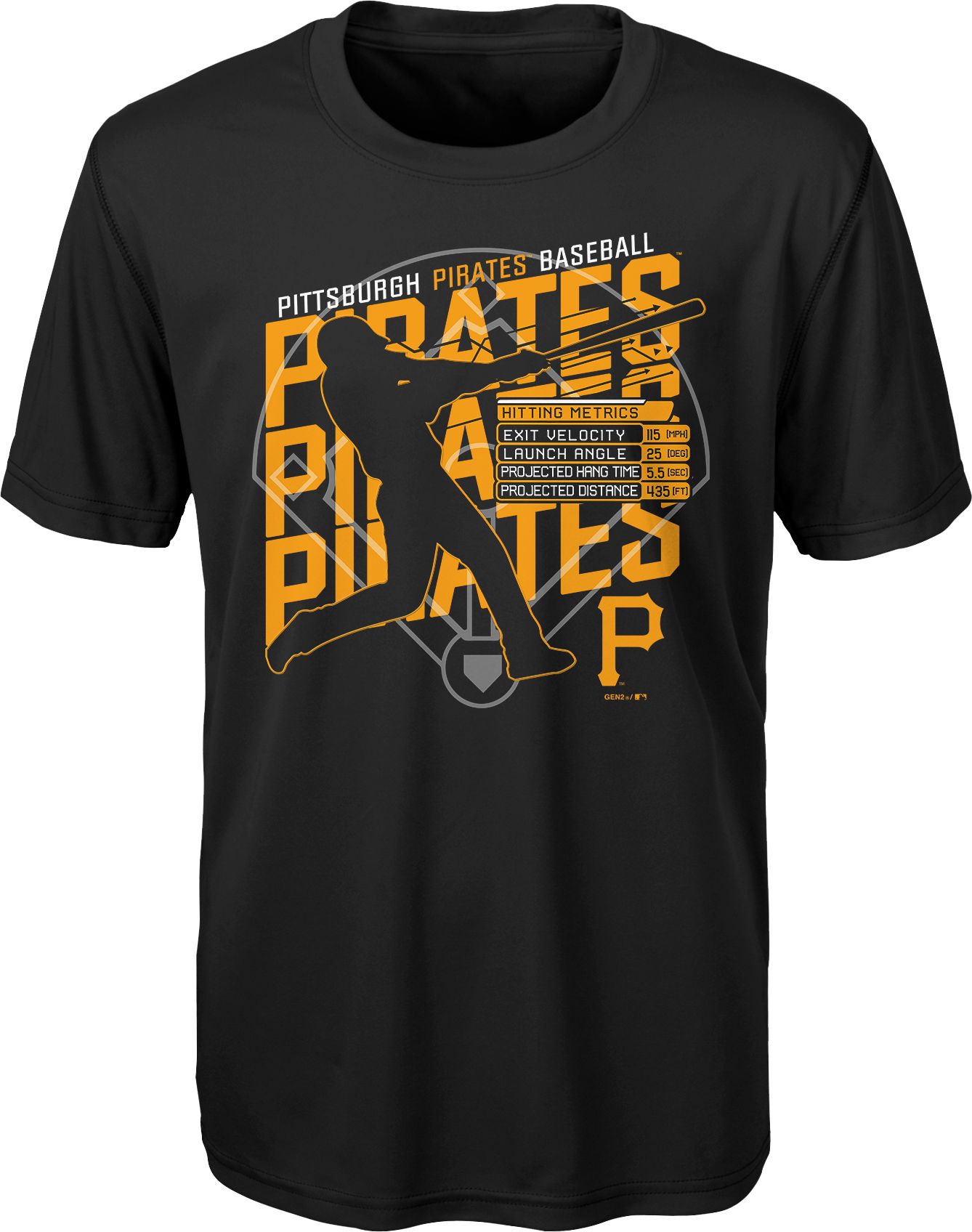 Your little fan will show off their favorite team as well as their knowledge of baseball in the Gen2® Youth Pittsburgh Pirates Matrix T-Shirt.