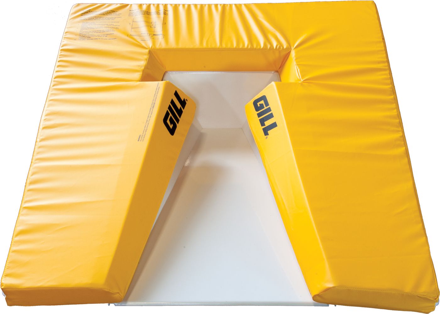 Protect your vaulters this season with the Gill® SafetyMax+ Vault Box Collar. Designed to pad exposed hard surfaces around the vault box, the SafetyMax features winged arms that go down into the vault box for greater protection. This protective equipment accessory is safety yellow, which helps highlight the open area for planting the vaulting pole. Works with any style of pole vault landing system and compliant with ASTM standard F2949.