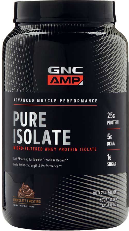 Take the ultra-clean GNC Amp Pure Isolate Protein for a high-quality workout. This protein is micro-filtered to provide the best quality possible. It assists with muscle growth and repair as well as improving strength and performance. The flavor mixes with water or milk for a protein boost any time of day.