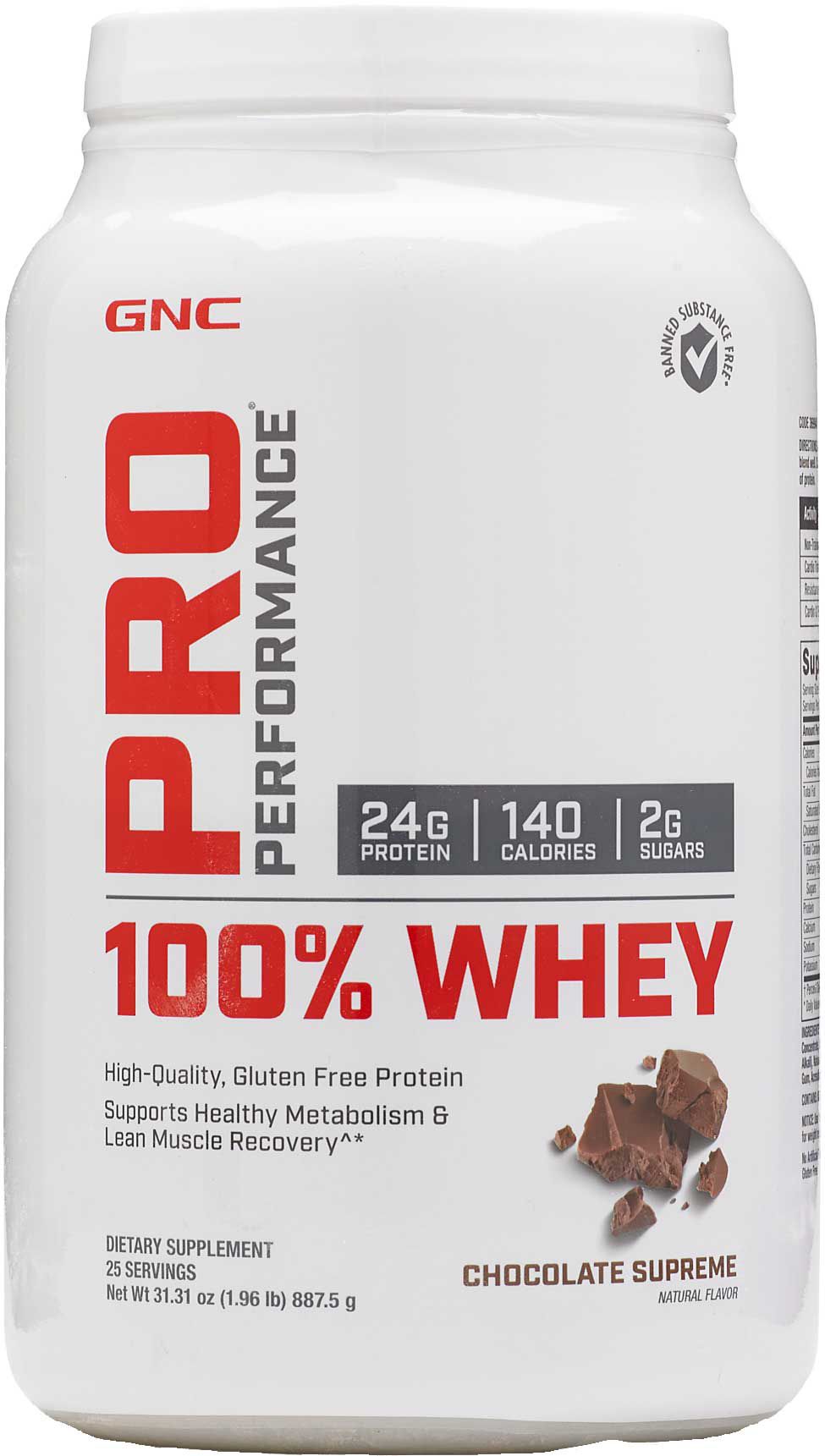 Achieve your wellness and fitness goals with GNC Pro Performance 100% Whey Protein Powder 25 Servings. This whey protein supplement is formulated to the highest quality, promoting lean muscle development, a healthier metabolism, and improved athletic performance. The flavor mixes smoothly with milk or water, providing you with a delicious protein boost any time of day.