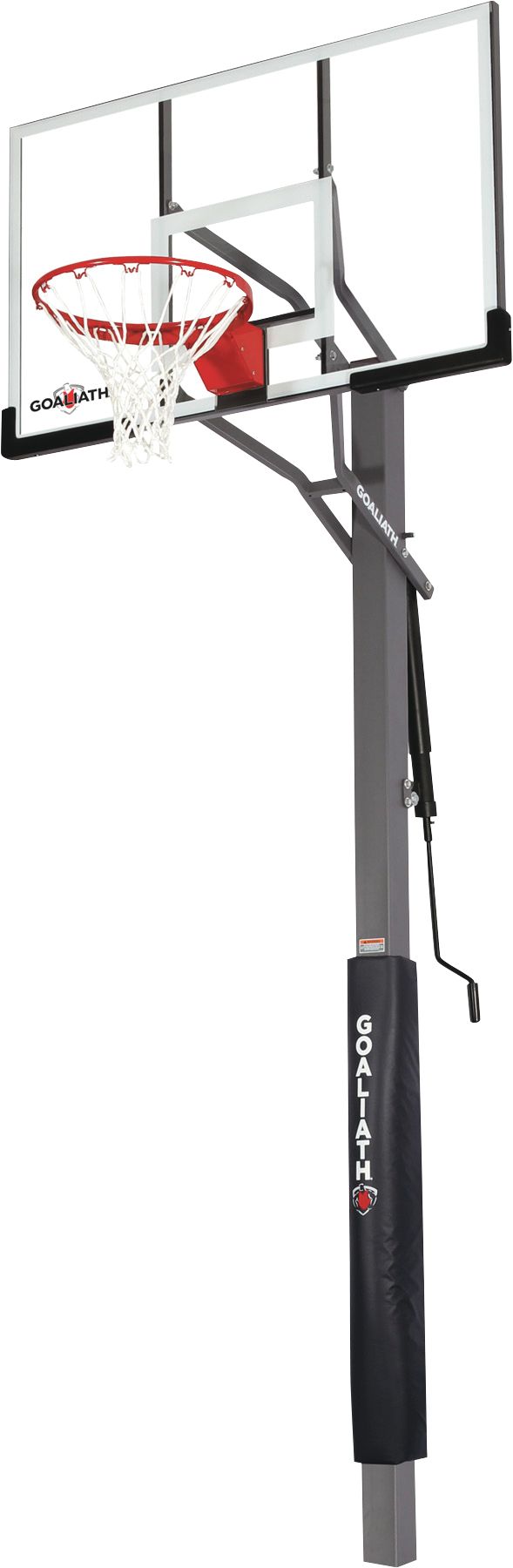 Bring the game to your backyard with the Goaliath® 54” Warrior In-Ground Basketball Hoop. A 54” tempered glass backboard is supported by a heavy duty and durable swedged two-piece steel pole. The entire system is Dupont® powder coated for ultimate UV and corrosion resistance so this hoop will withstand the weather and intense games. Includes backboard pads, and pole pad for greater player protection. Goaliath basketball hoops are made by the same company that manufactures Goalrilla basketball hoops/systems.