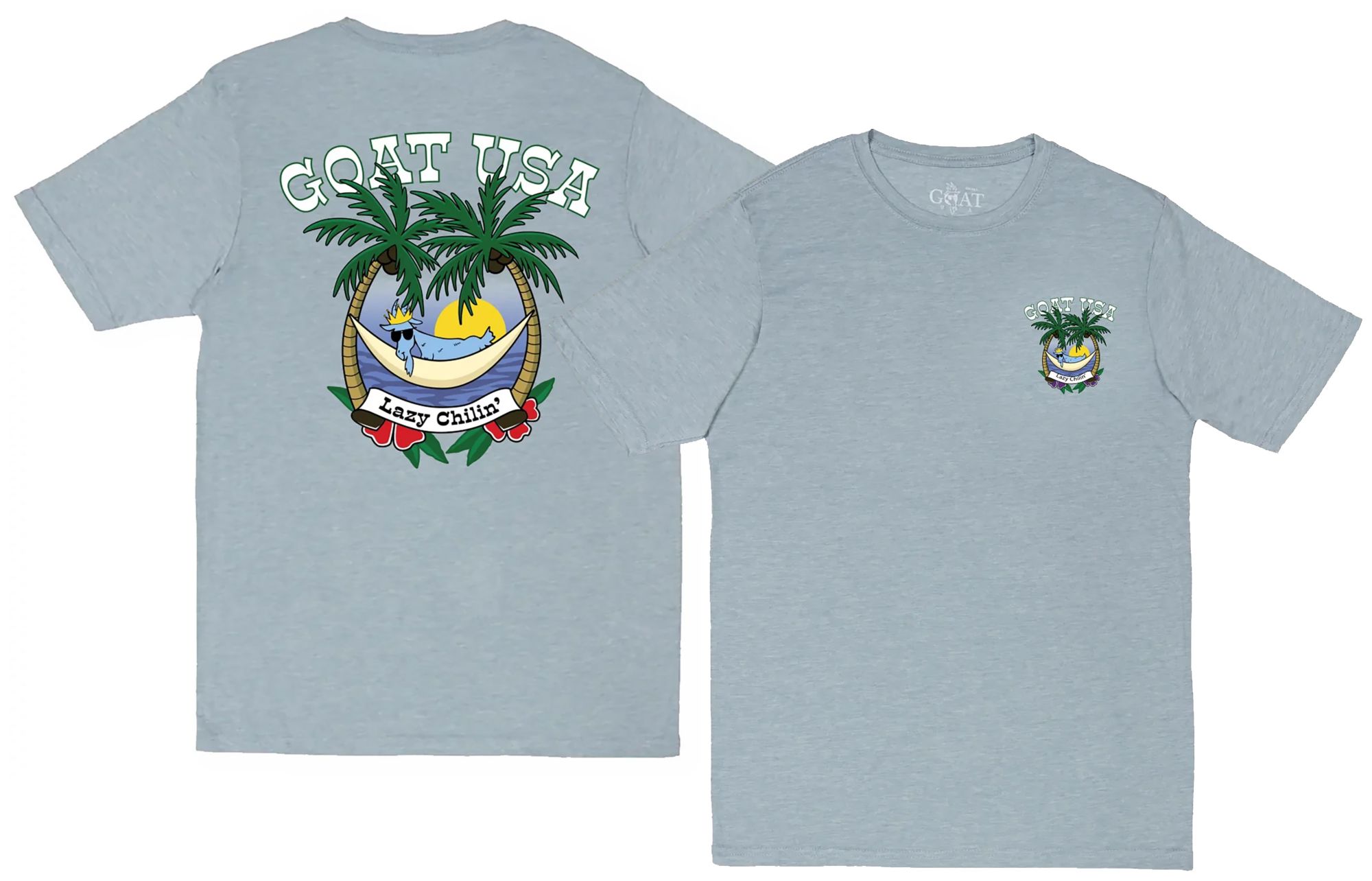Sit back and relax with Chuck the GOAT in the palm tree paradise-themed Lazy Chillin' T-Shirt, displaying Chuck unwinding in a hammock. Featuring the stylish colors Stonewash Denim and Peach Cream, this new shirt is perfect for chillin' all summer long.