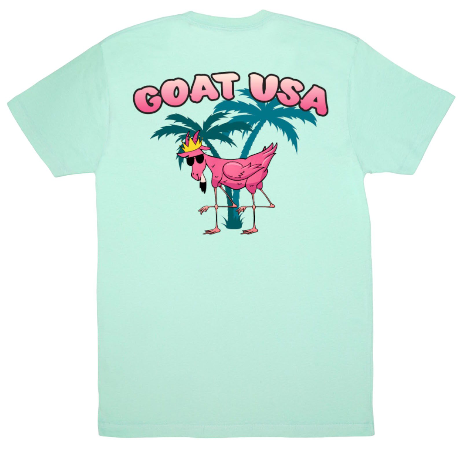 Stroll into summer with your head held high in the brand new FlaminGOAT T-Shirt. In this summer-inspired t-shirt, Chuck the GOAT dons some pink feathers and long legs, transforming into a tall and colorful FlaminGOAT.