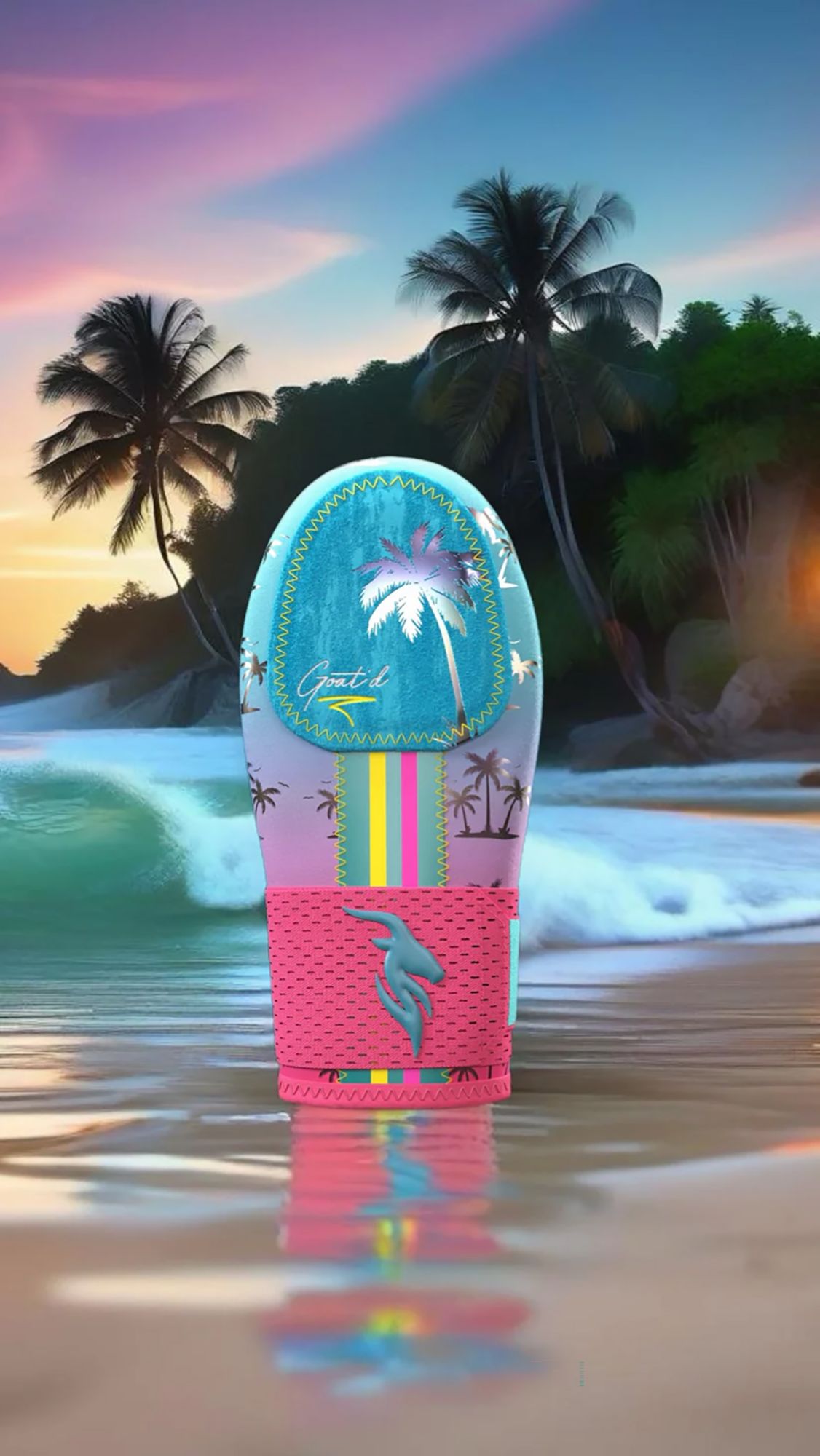 Introducing the "Reverse California Breeze". This mitt features a bold pink and blue colorway, accented by an iridescent wave across the back that shimmers like the Pacific at sunset. It's a celebration of confidence, style, and excellence in every play. Let's win.