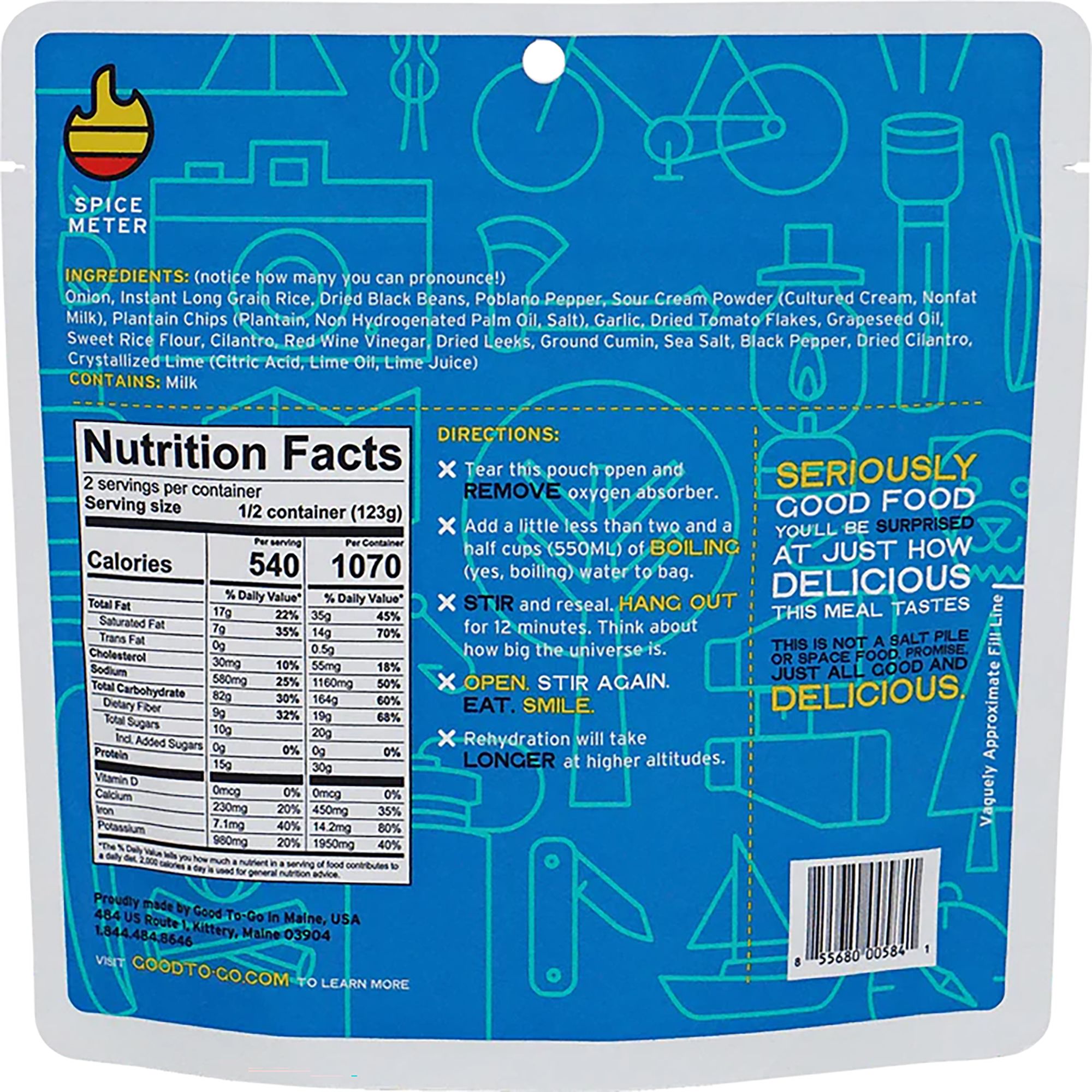 [This review was collected as part of a promotion.] Took this on a long weekend in the Wallowas. Product was easy to pack. It tasted good… pretty spicy but needed a little salt. would buy again for a future trip.