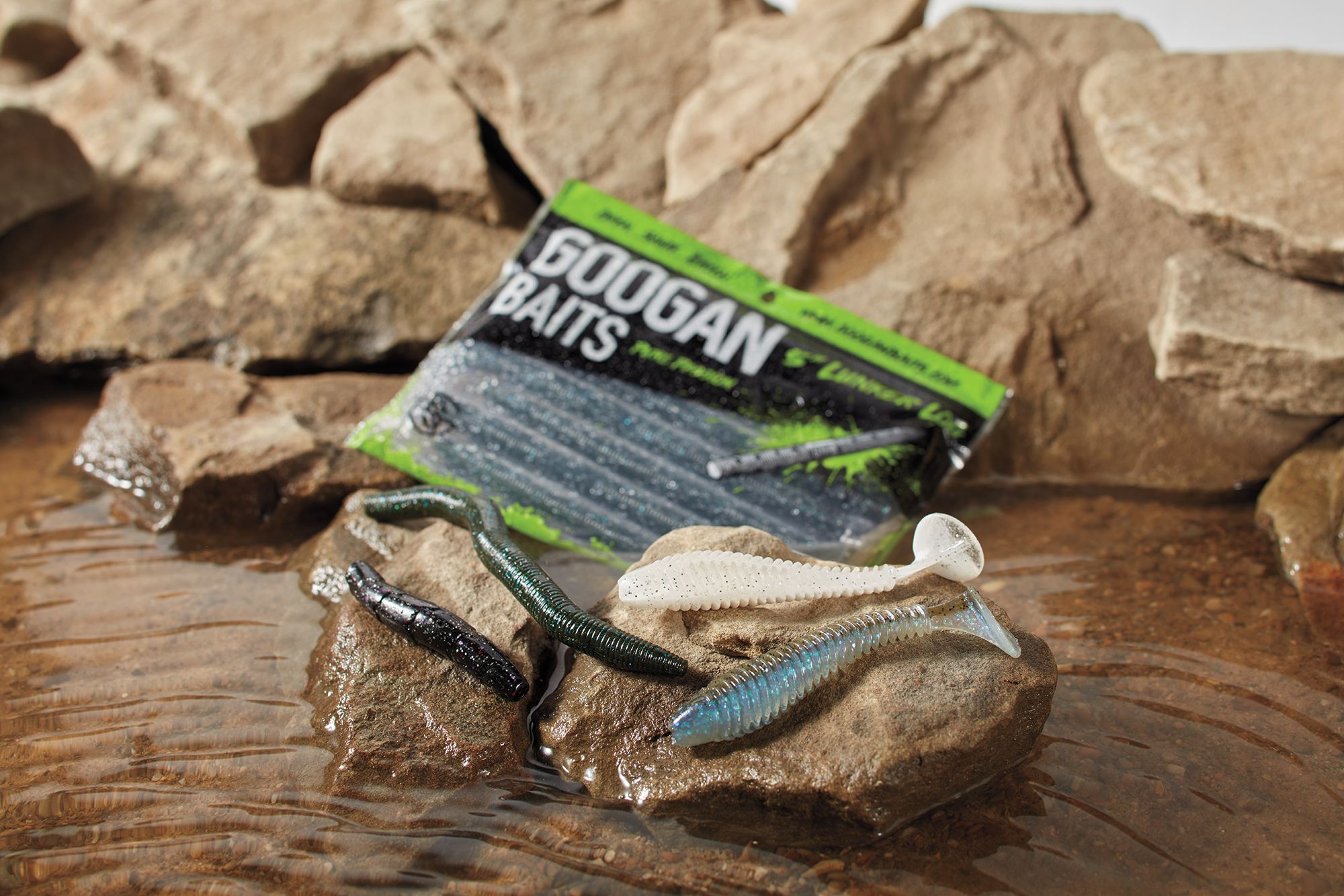 The Googan Baits® Saucy Swimmer grabs and disperses water while swimming to give the tail an irresistible wagging kick and the body a natural wobbling motion. Use the Saucy Swimmer on a light weighted hook for shallow fish or rig it on a jig head for suspending deep fish. Sauce up a vibrating jig to amplify thumping action or use on spinnerbaits and buzzbaits for a more lifelike bait profile.