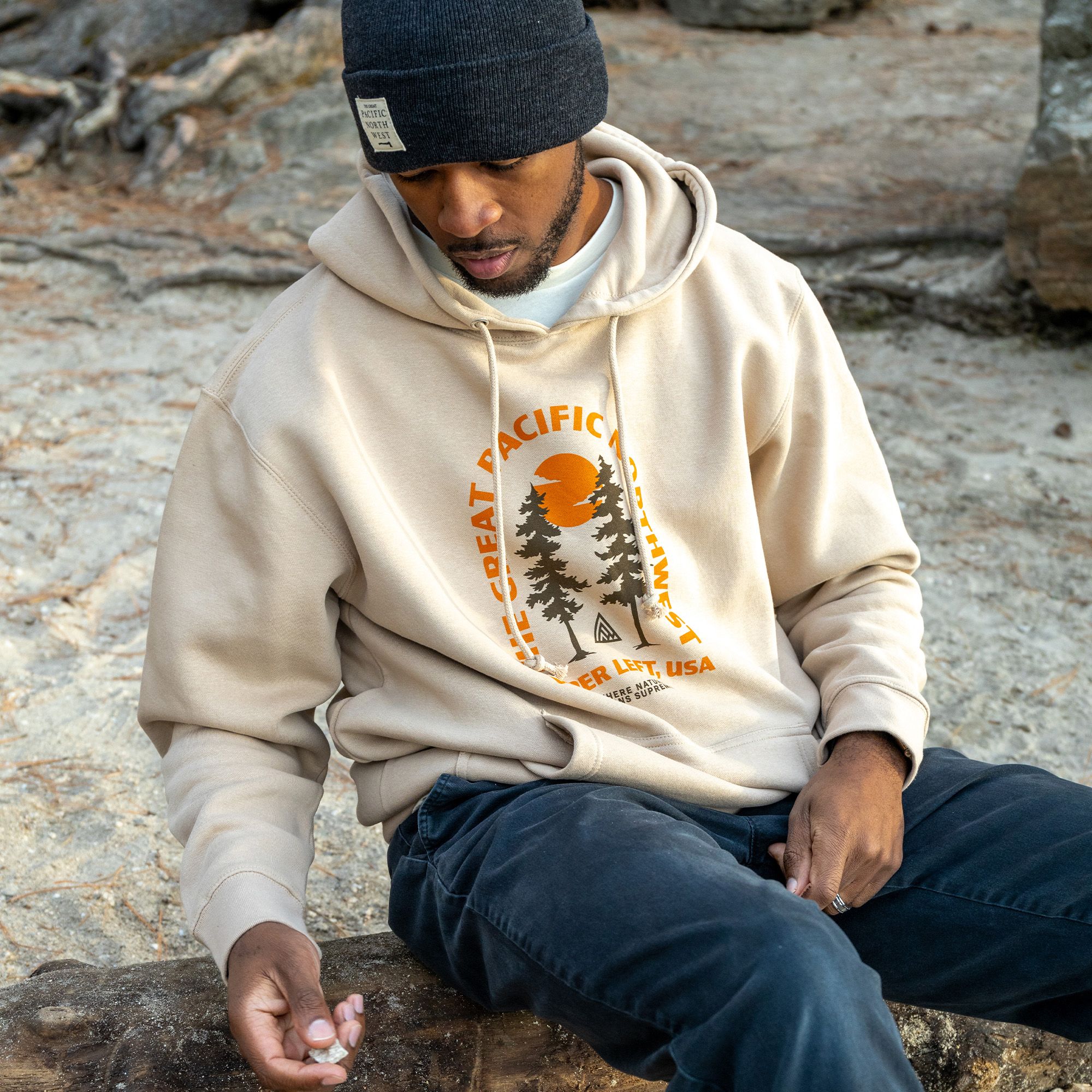 Great PNW Men's Pacific Northwest Tan Reign Supreme Pullover Hoodie